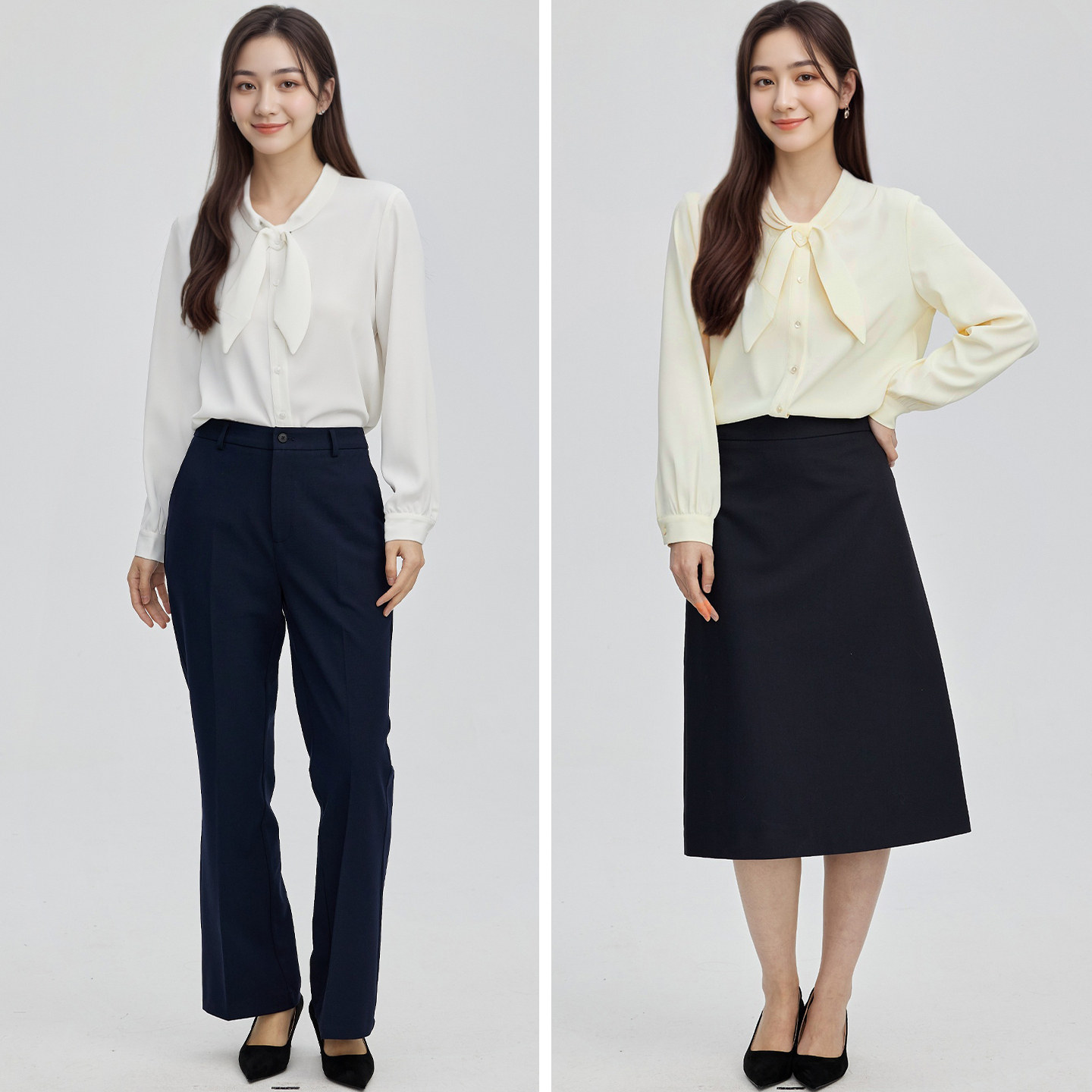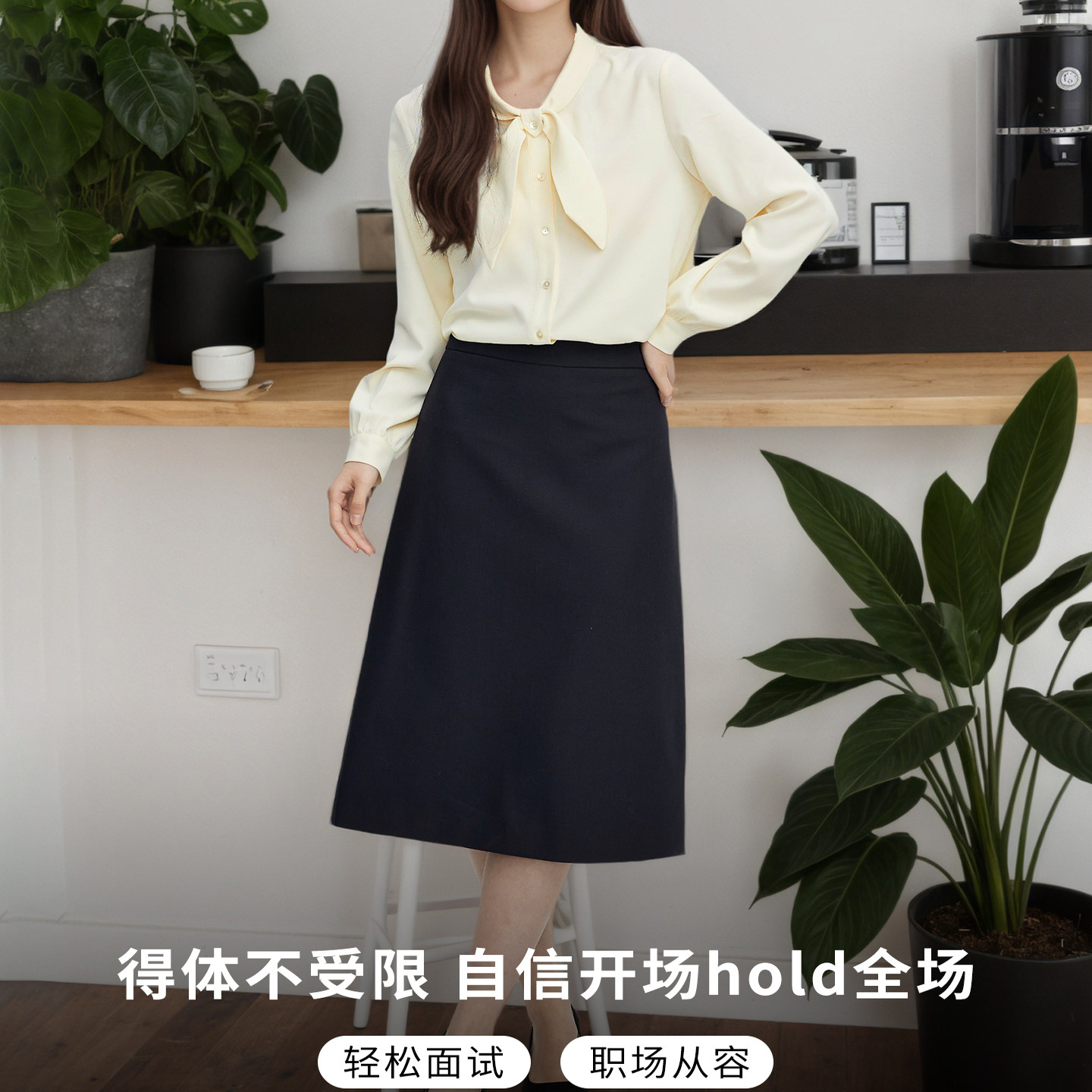 游美雪纺长袖衬衫女春秋小个子通勤穿搭套装职业正装教师面试衬衣