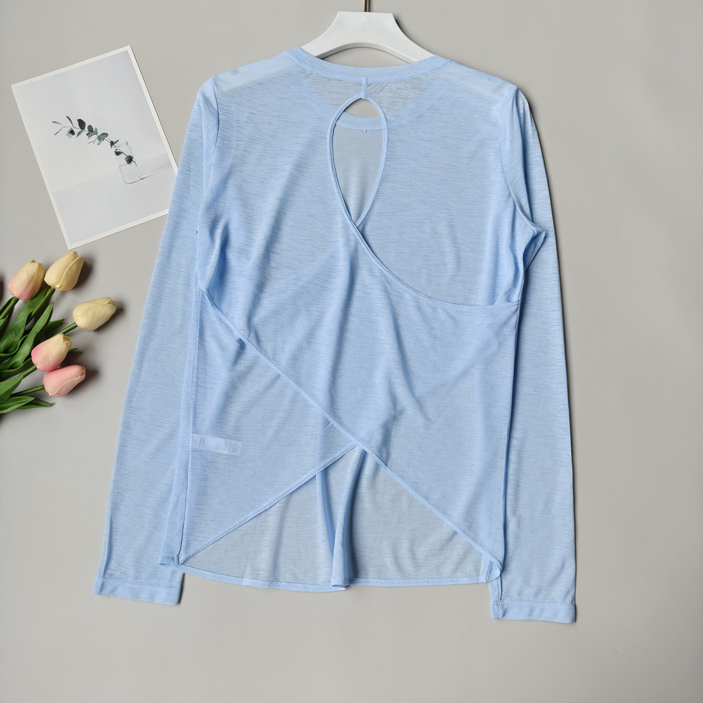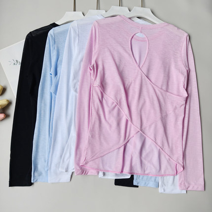 竹节纱夏季运动长袖瑜伽服女上衣高级感薄款背心透气健身运动罩衫