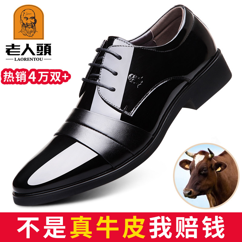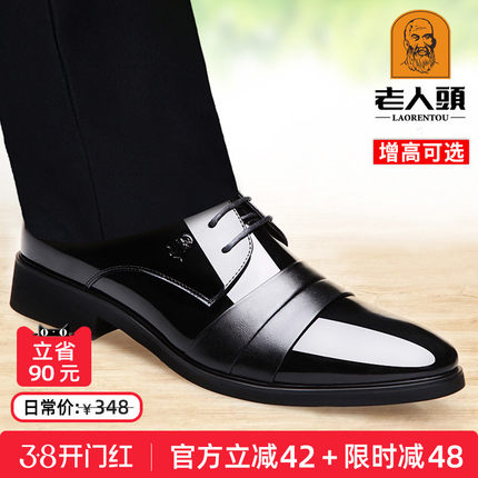 老人头男鞋内增高皮鞋春秋商务正装皮鞋男士真皮透气英伦新郎婚鞋