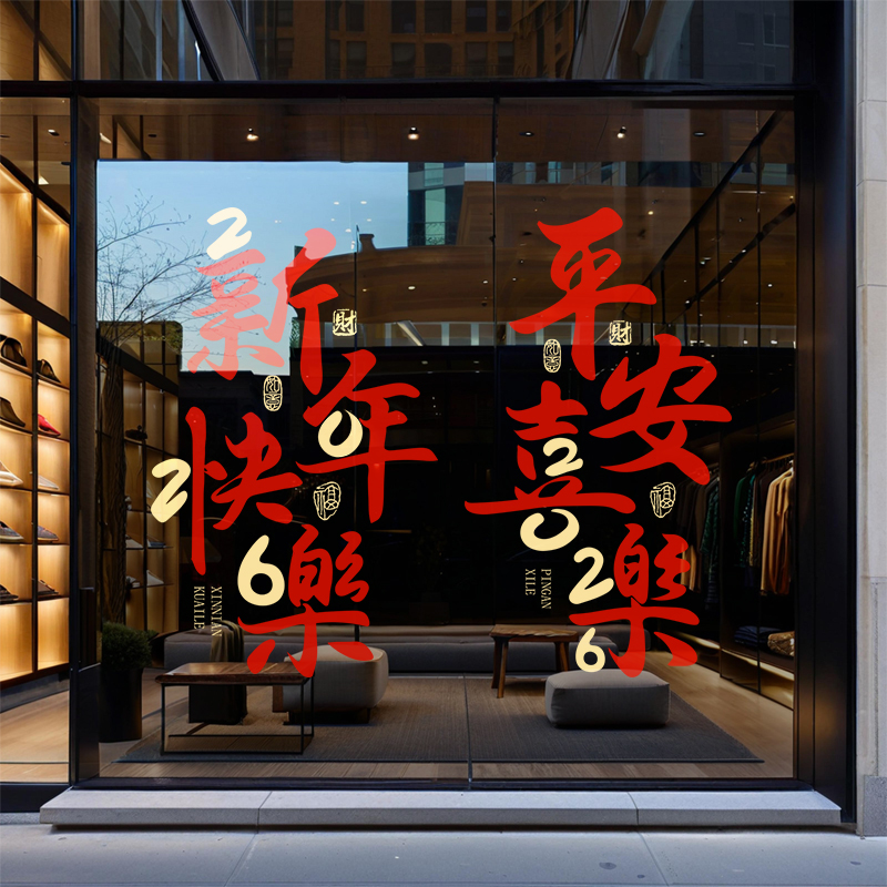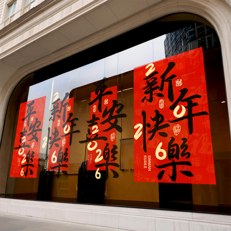 2026新年窗花静电贴场景布置玻璃橱窗户马年春节过年剪纸新款装饰