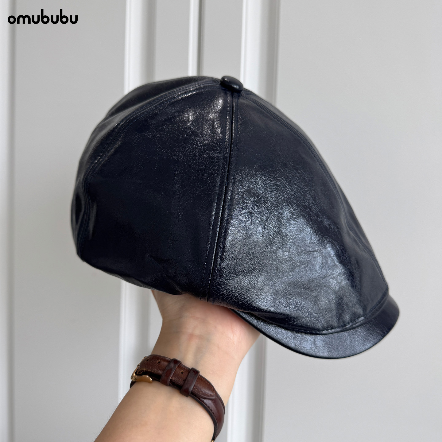 omububu日系复古pu皮质贝雷帽女英伦纯色八角帽子春秋鸭舌前进帽