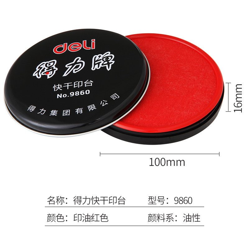 得力印台水性快干铁盒印泥儿童手指画橡皮章指纹铜章盖章秒干印泥印油红色印章油回墨印油红色墨水包邮
