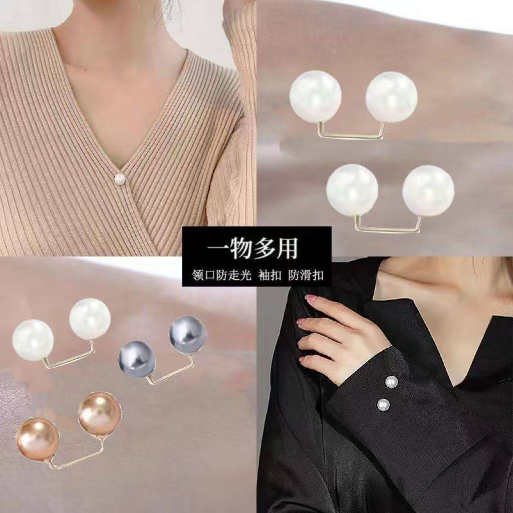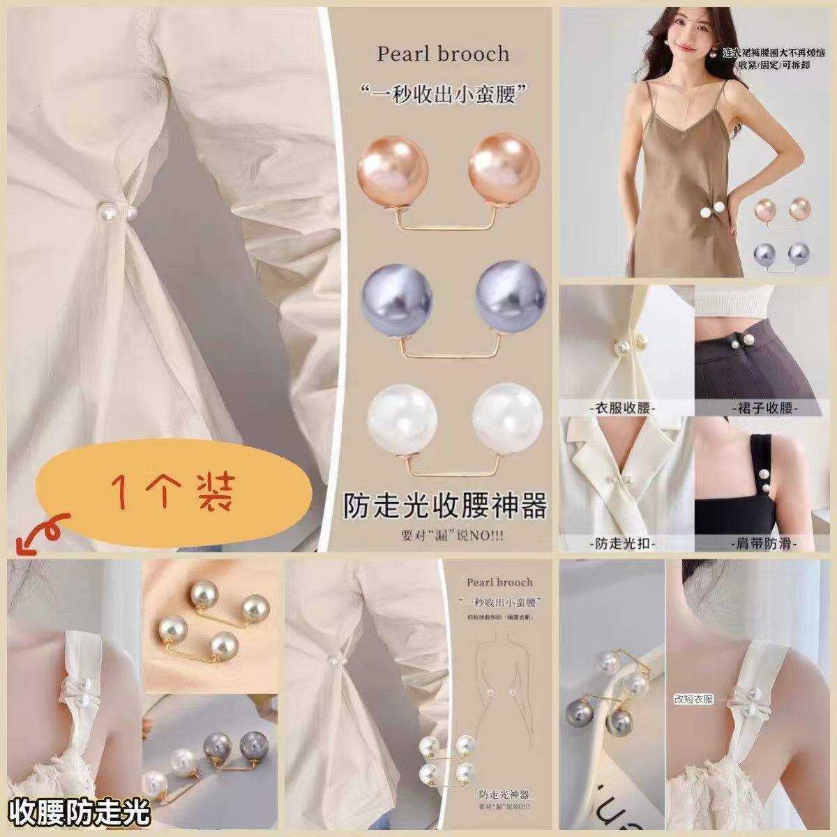 领口防走光珍珠收腰扣胸针