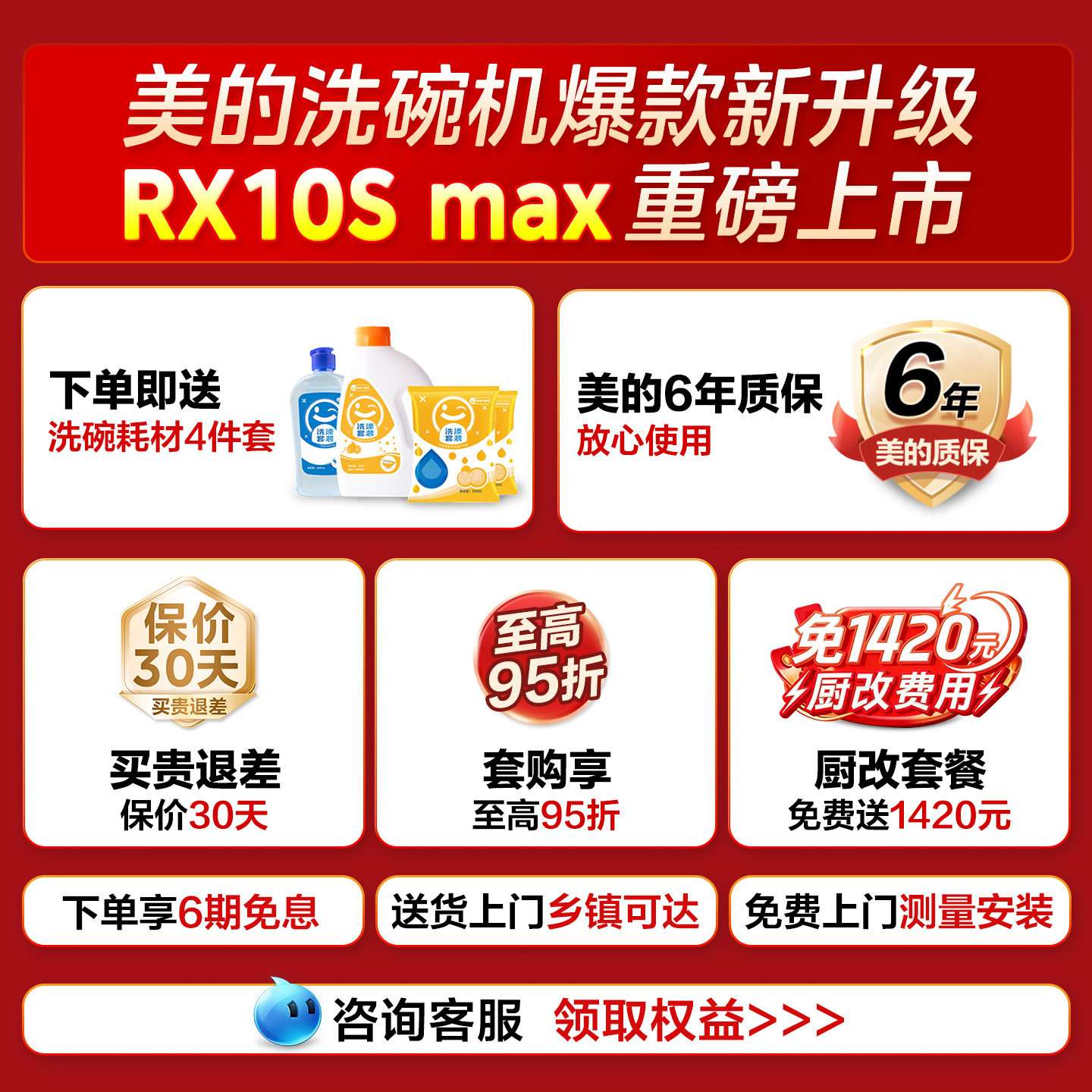 美的洗碗机RX10SMax嵌入式全自动家用14套智能热风烘干消毒大容量