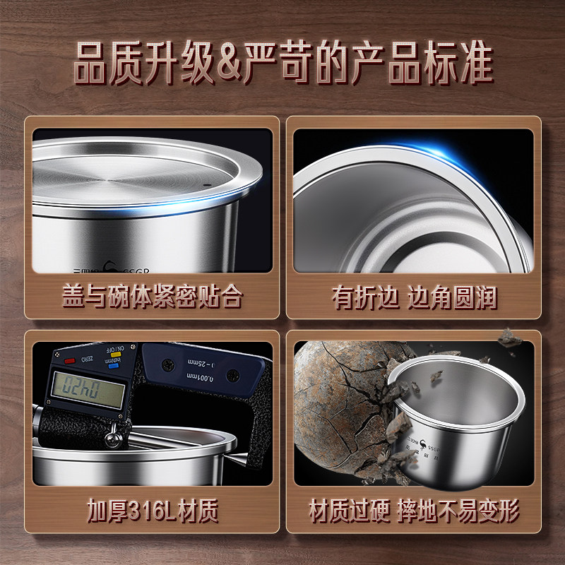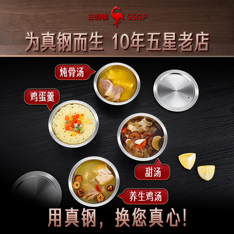 三四钢®316L不锈钢蒸蛋碗带盖蒸碗蒸鸡蛋羹专用碗炖盅隔水炖家用
