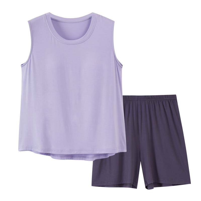 带胸垫睡衣女士夏季莫代尔薄款可爱无袖背心套装可外穿夏天家居服