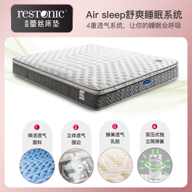 美国蕾丝床垫天然乳胶席梦思分区护脊独立弹簧防螨硬床垫 拉奈