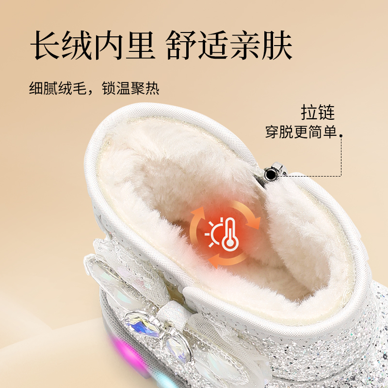泰兰尼斯闪灯鞋冬季新款儿童雪地靴女童发光鞋加绒保暖棉鞋短靴子