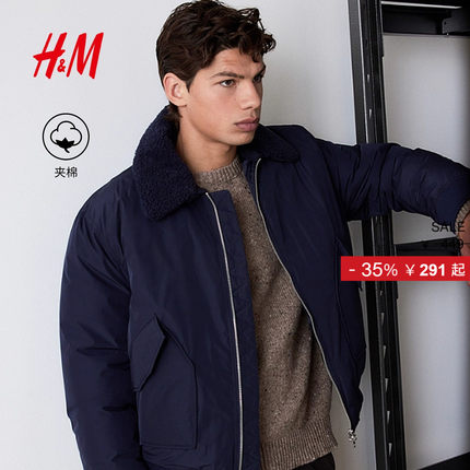HM男装夹克冬季标准版型底特律时尚有领飞行员拉链外套1251882