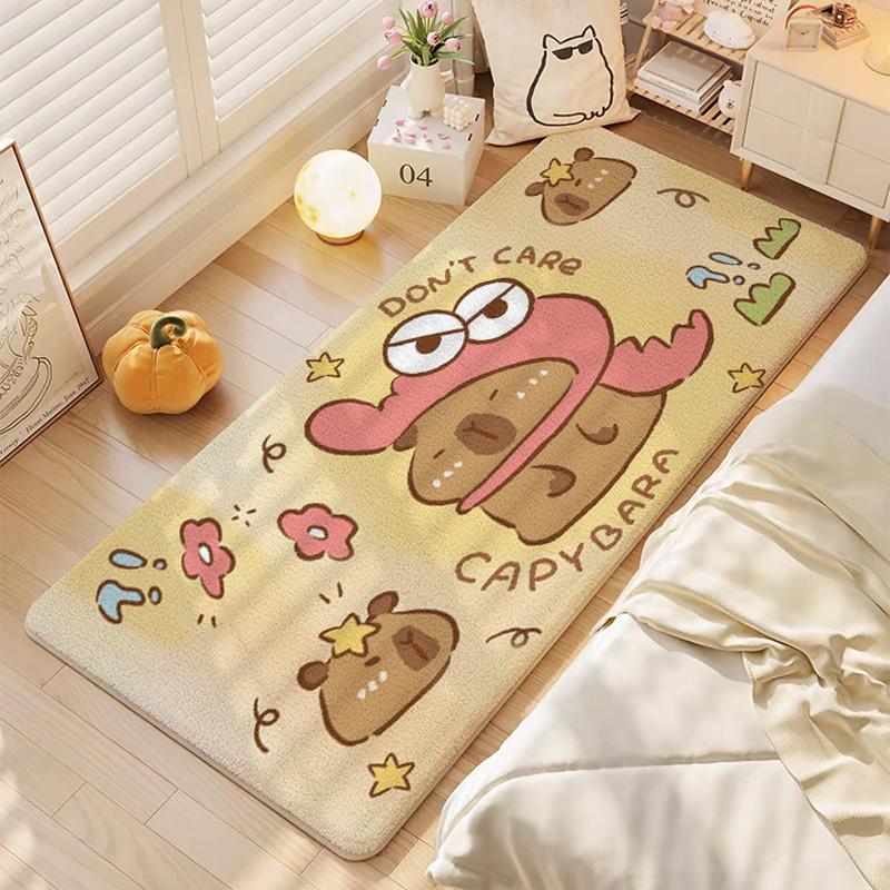 可爱卡皮巴拉绒毛垫卧室床边毯加厚地垫客厅地毯书房长条防滑垫子
