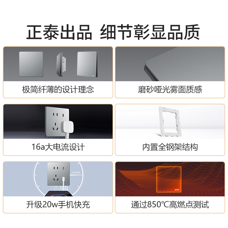 正泰官方旗舰店86型开关插座空调16a一开快充五孔超薄面板3L灰色