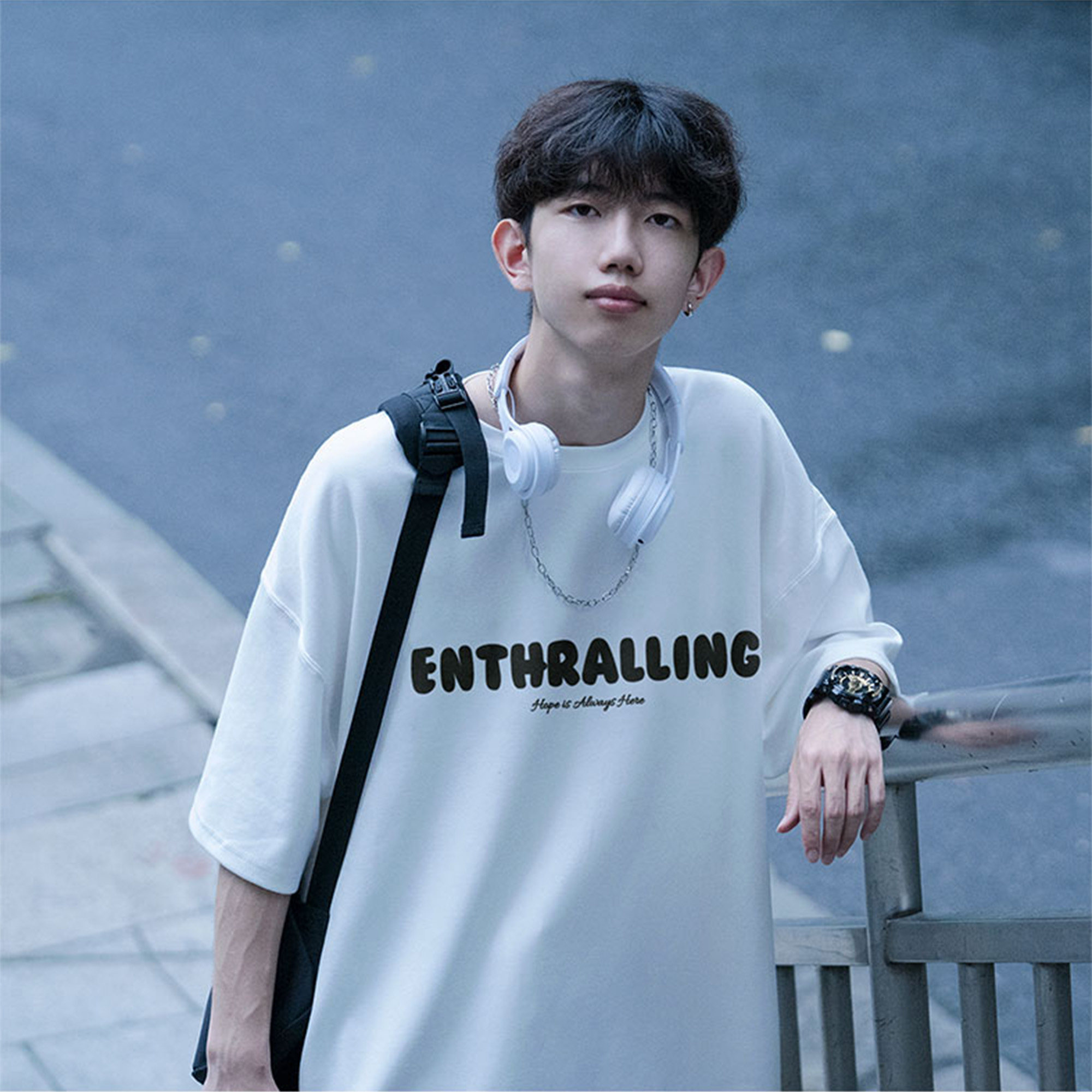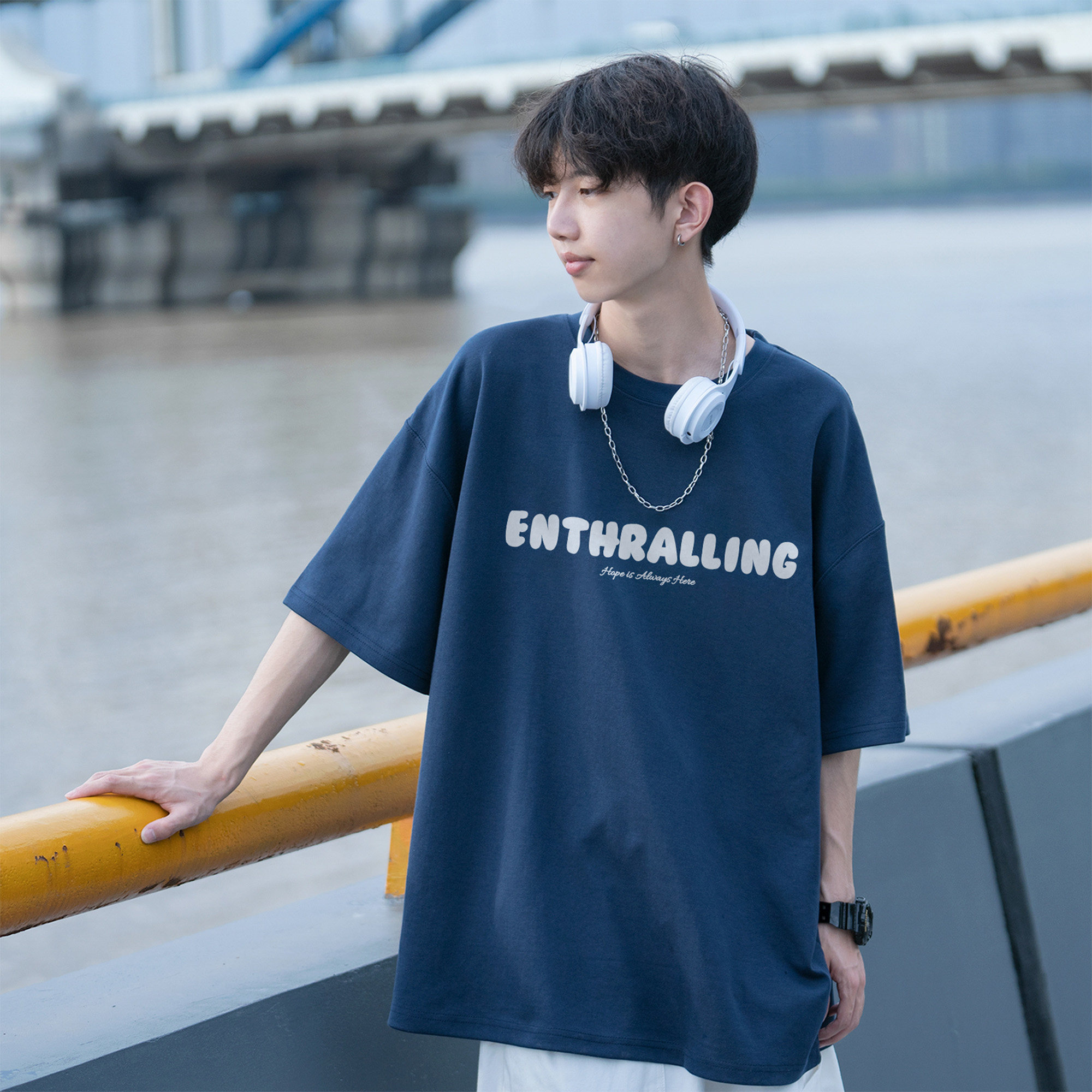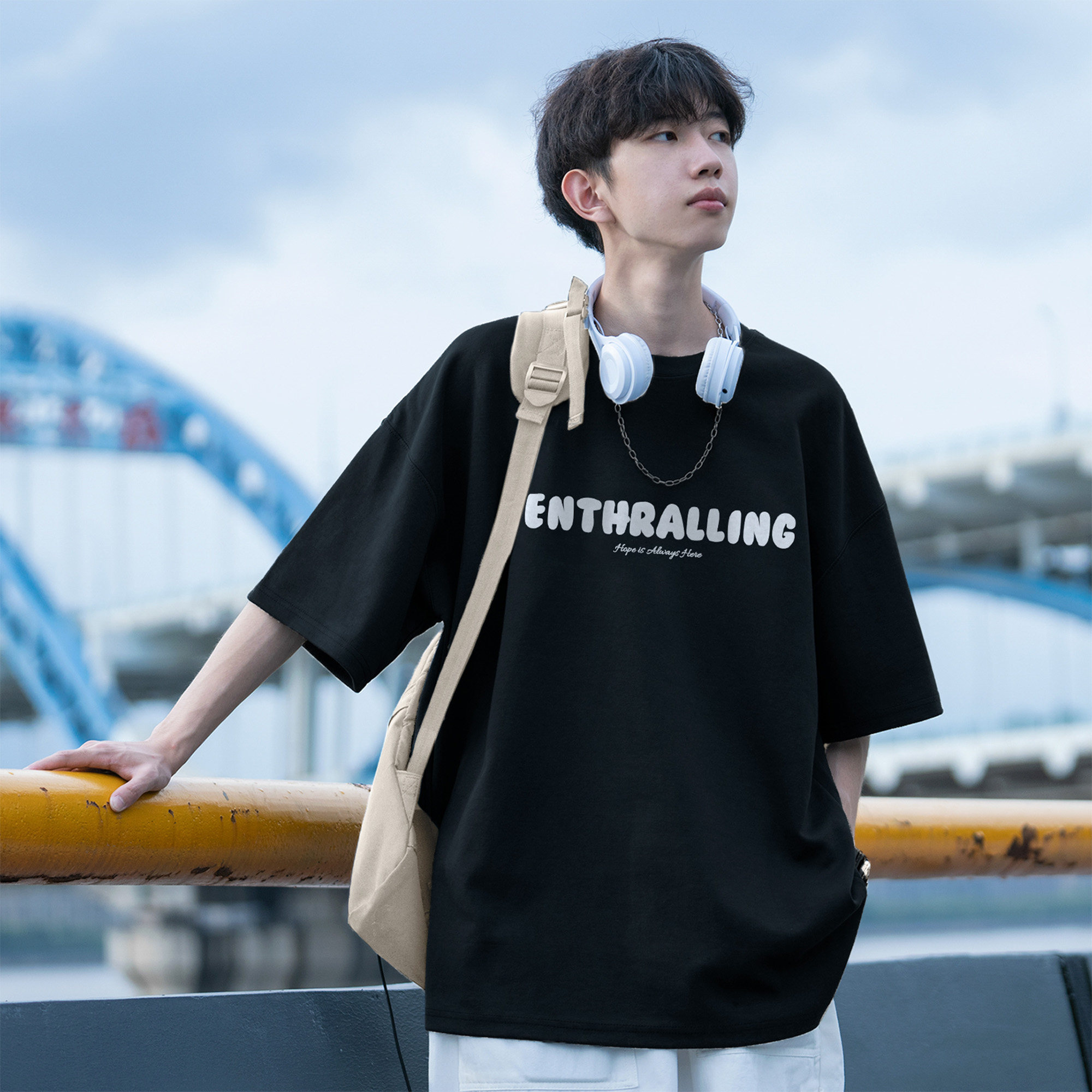 胖胖哥美式字母短袖T恤男2025新款夏季潮流大码宽松上衣圆领体恤