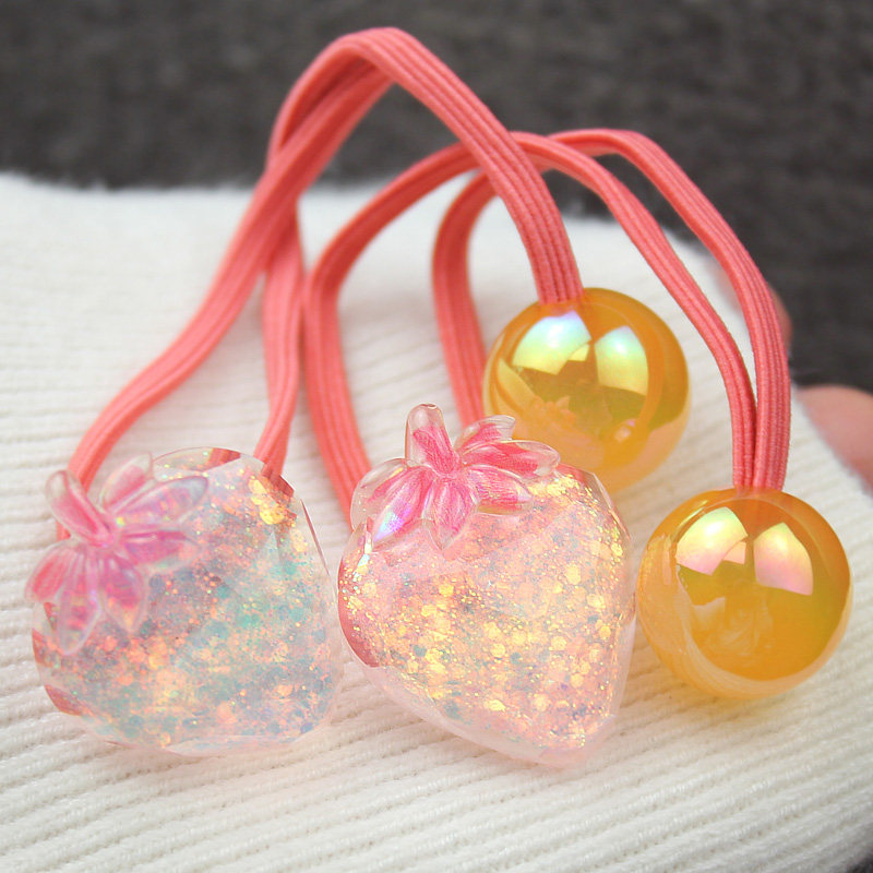 彩色闪亮渐变草莓发绳女孩大发圈儿童头绳丸子高马尾橡皮筋绕绕扎