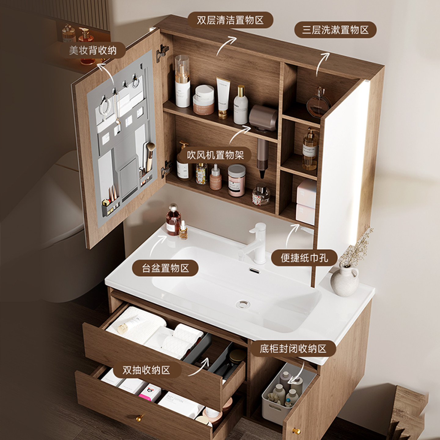 惠达胡桃木色浴室柜组合陶瓷一体盆洗漱台中古风卫浴洗手盆j60