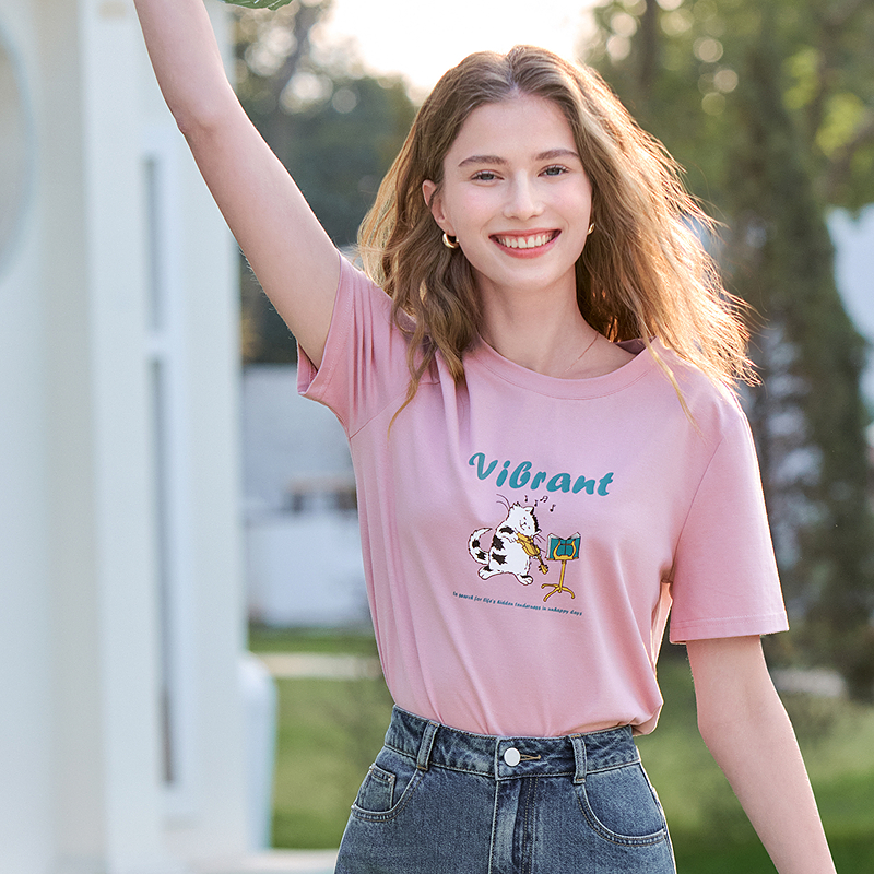 betu百图粉色减龄字母印花T恤女2025年春夏新款宽松显瘦体恤衫