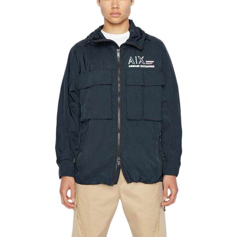ARMANI EXCHANGE阿玛尼 Logo印花连帽拉链风衣 男款 海军蓝色