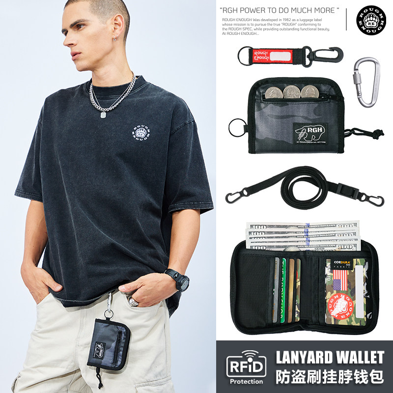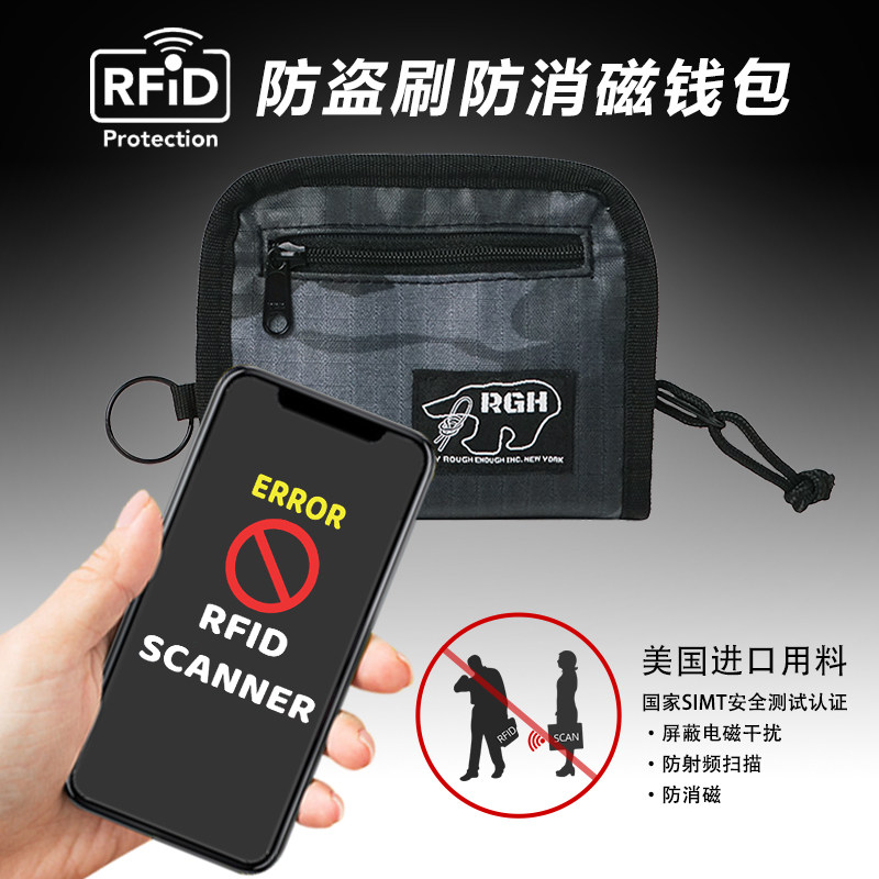 RGH 防盗刷防水钱包男短款拉链零钱包学生卡包一体小挂包潮牌新款
