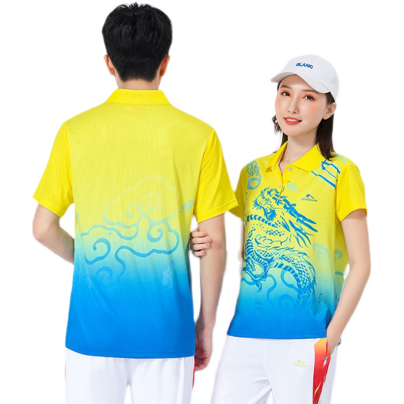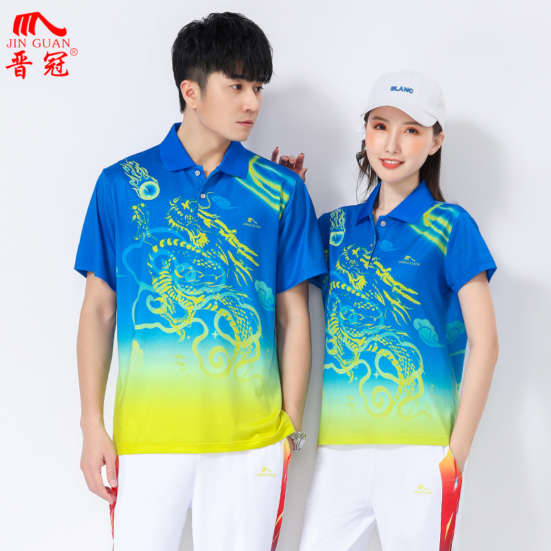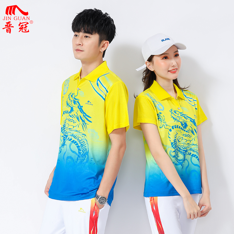 晋冠中国龙夏季短袖T恤长裤运动服套装南韩丝半袖男女大码团体服