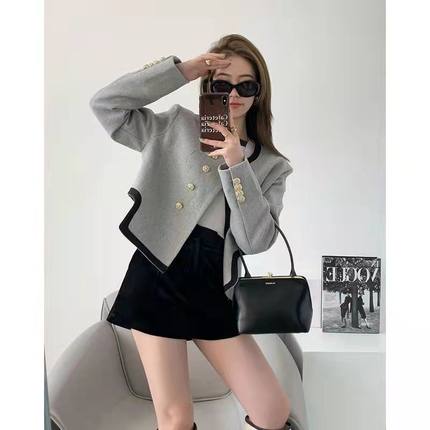 灰色不规则小香风外套女2025秋冬季新款法式高级感短款毛呢西装上
