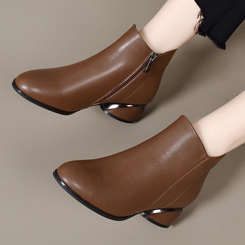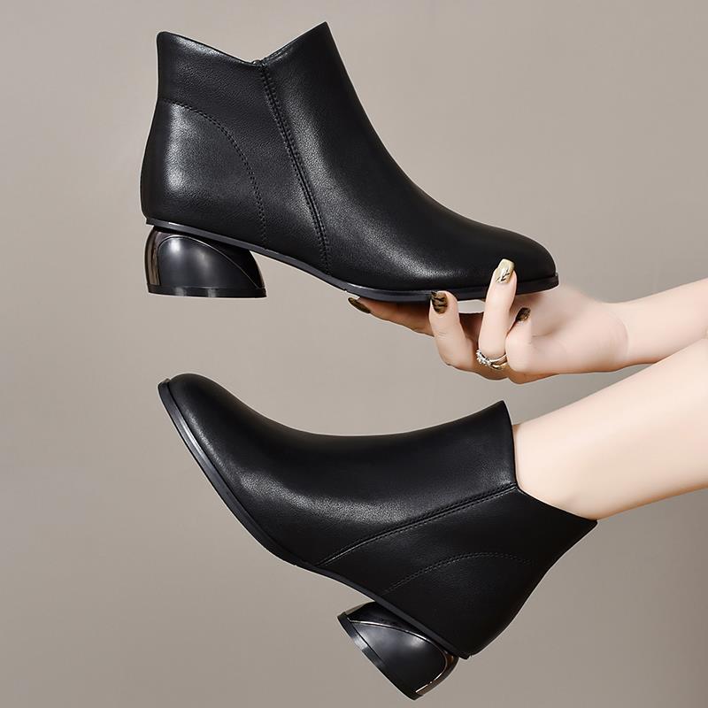 秋冬2025新款季粗跟短靴女圆头皮鞋中跟马丁靴女鞋1007u