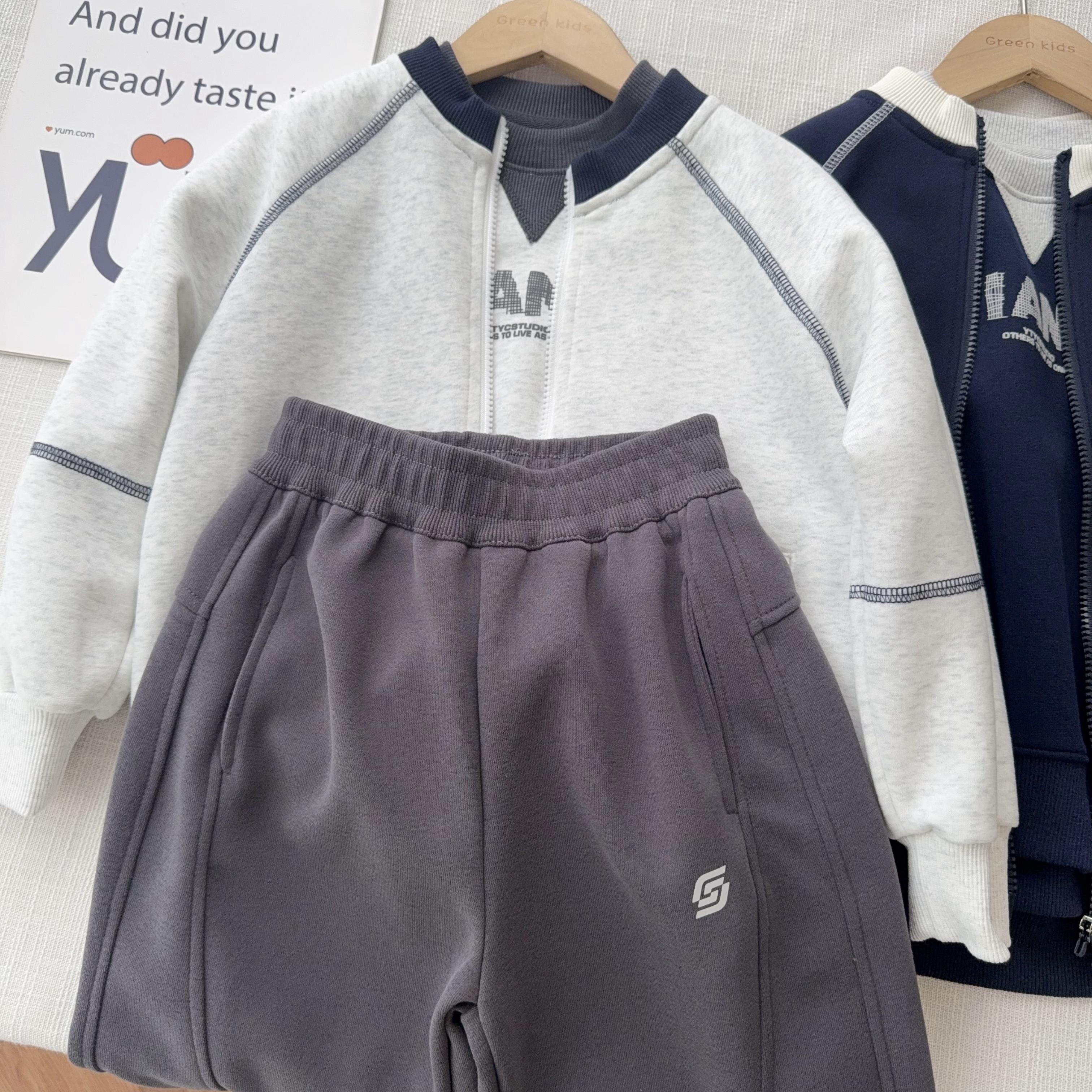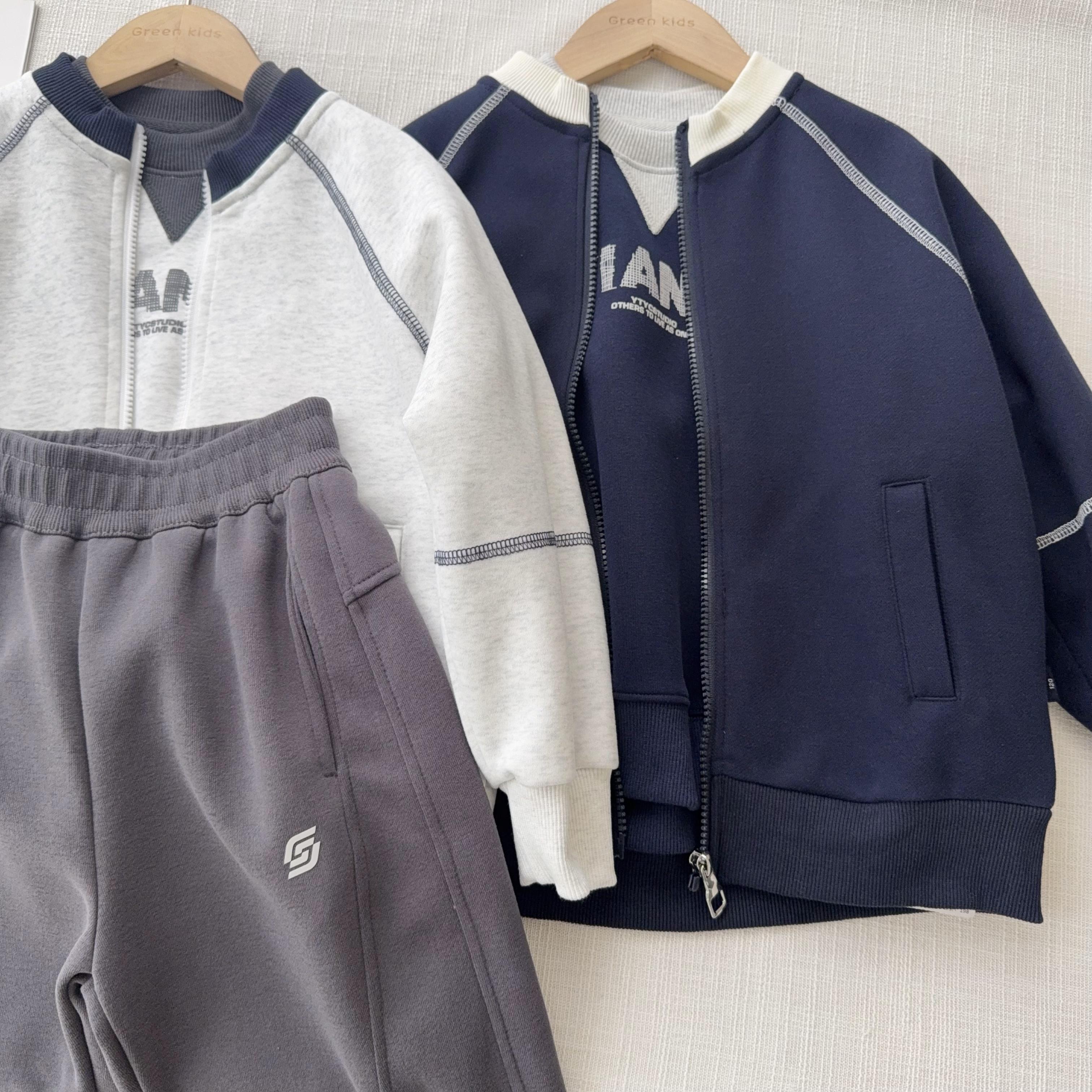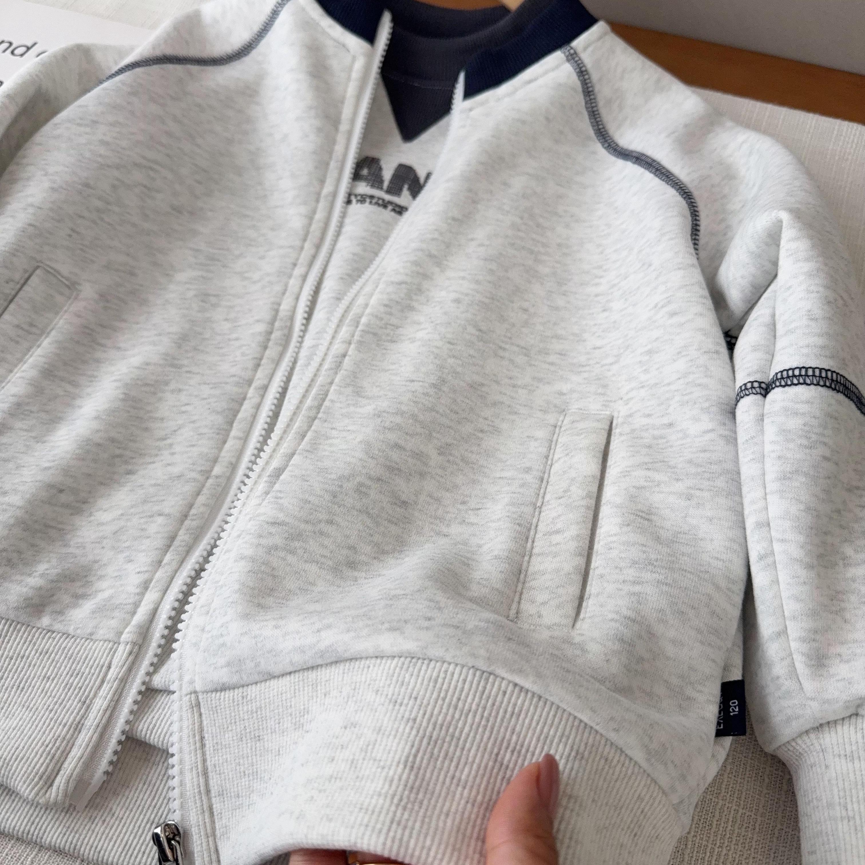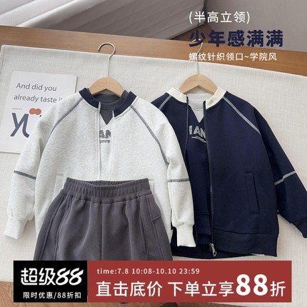 【两面都是棉拼线棒球服】中大童休闲双面棉螺纹领外套男女童上衣