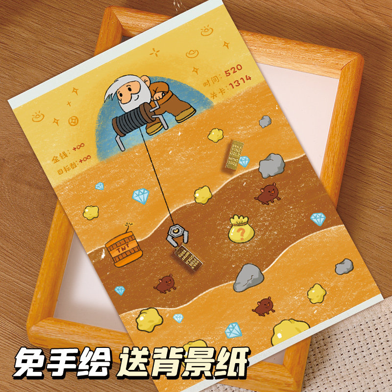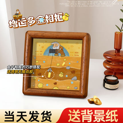 黄金矿工相框金子diy画挖金矿金豆收纳淘金手绘新年礼物创意摆件