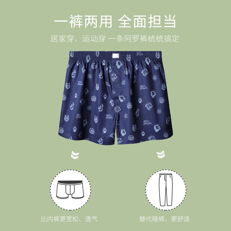 七匹狼男士内裤阿罗裤纯棉宽松大码平角家居啊罗睡裤四角短裤外穿