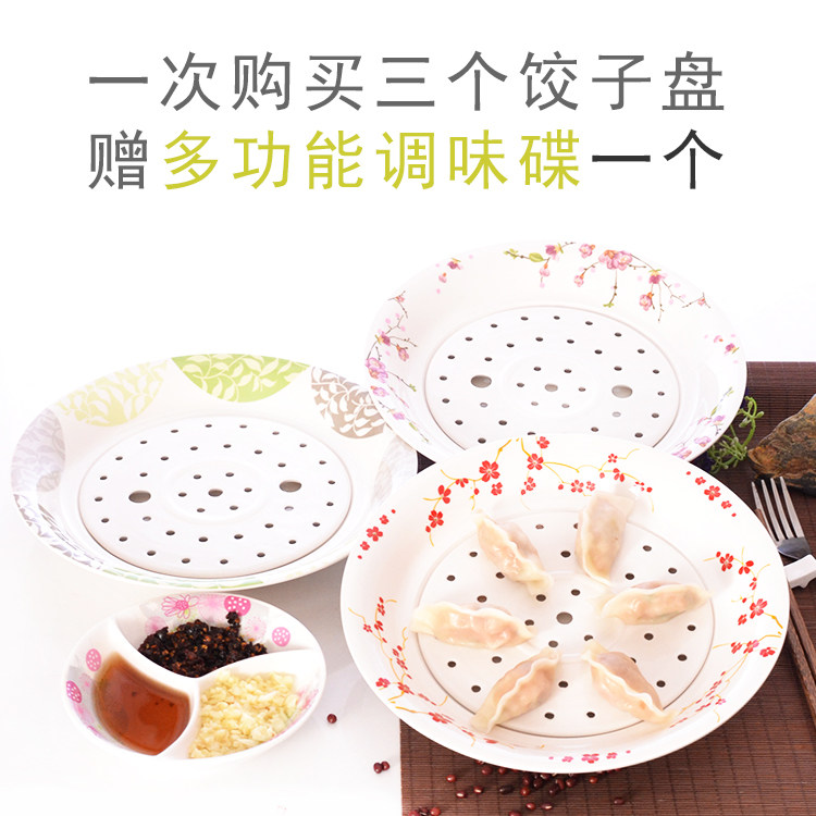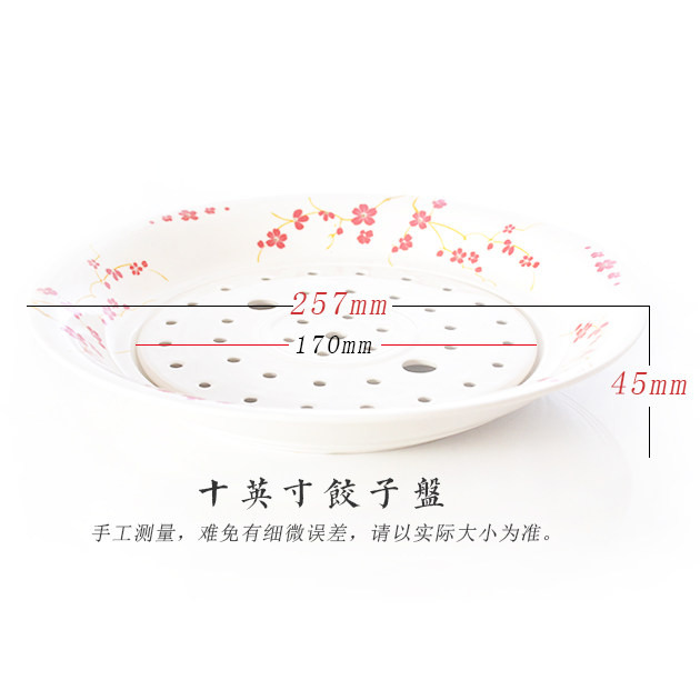 顺祥陶瓷饺子盘圆形双层沥水盘子果盘家用大菜盘深盘创意蒸盘托盘