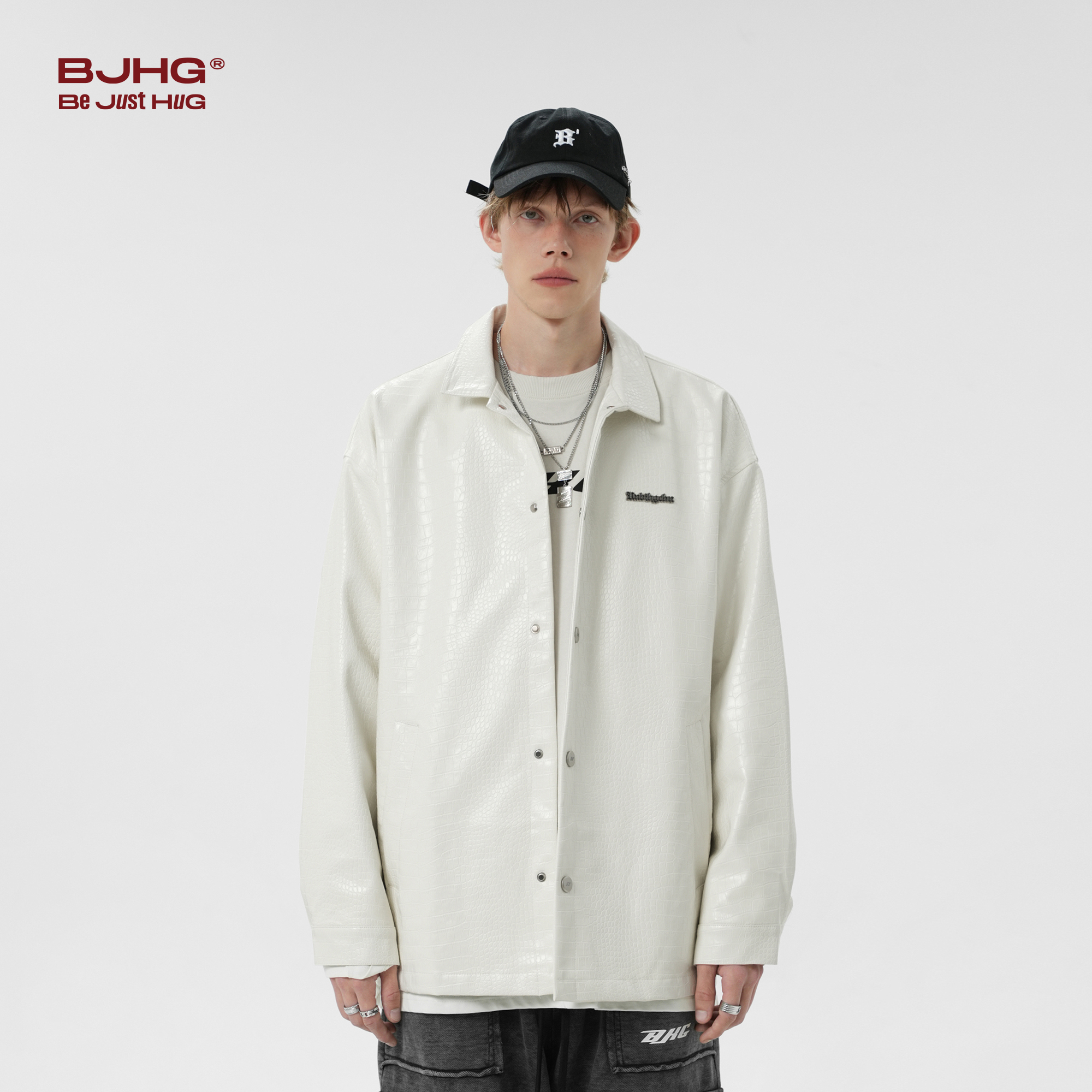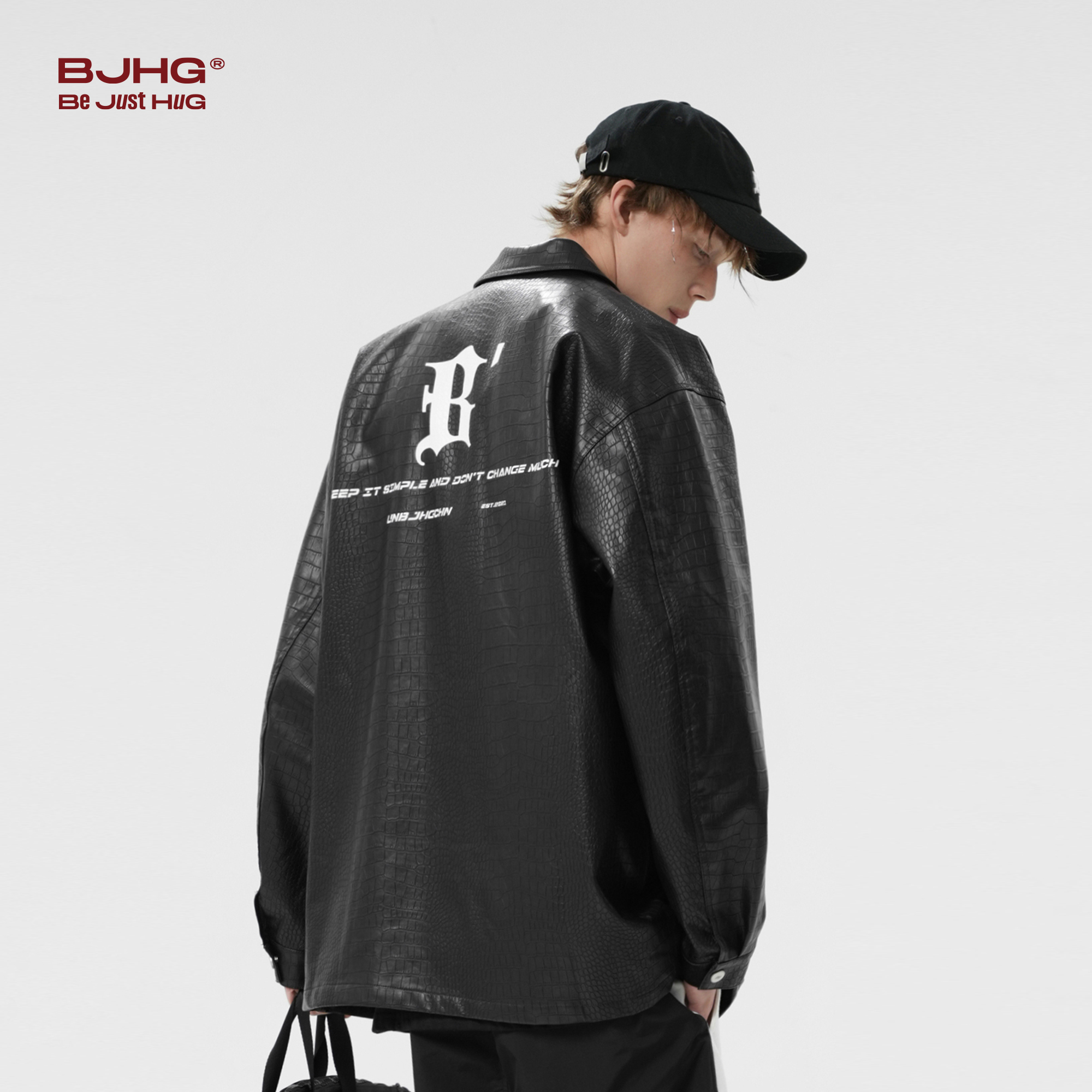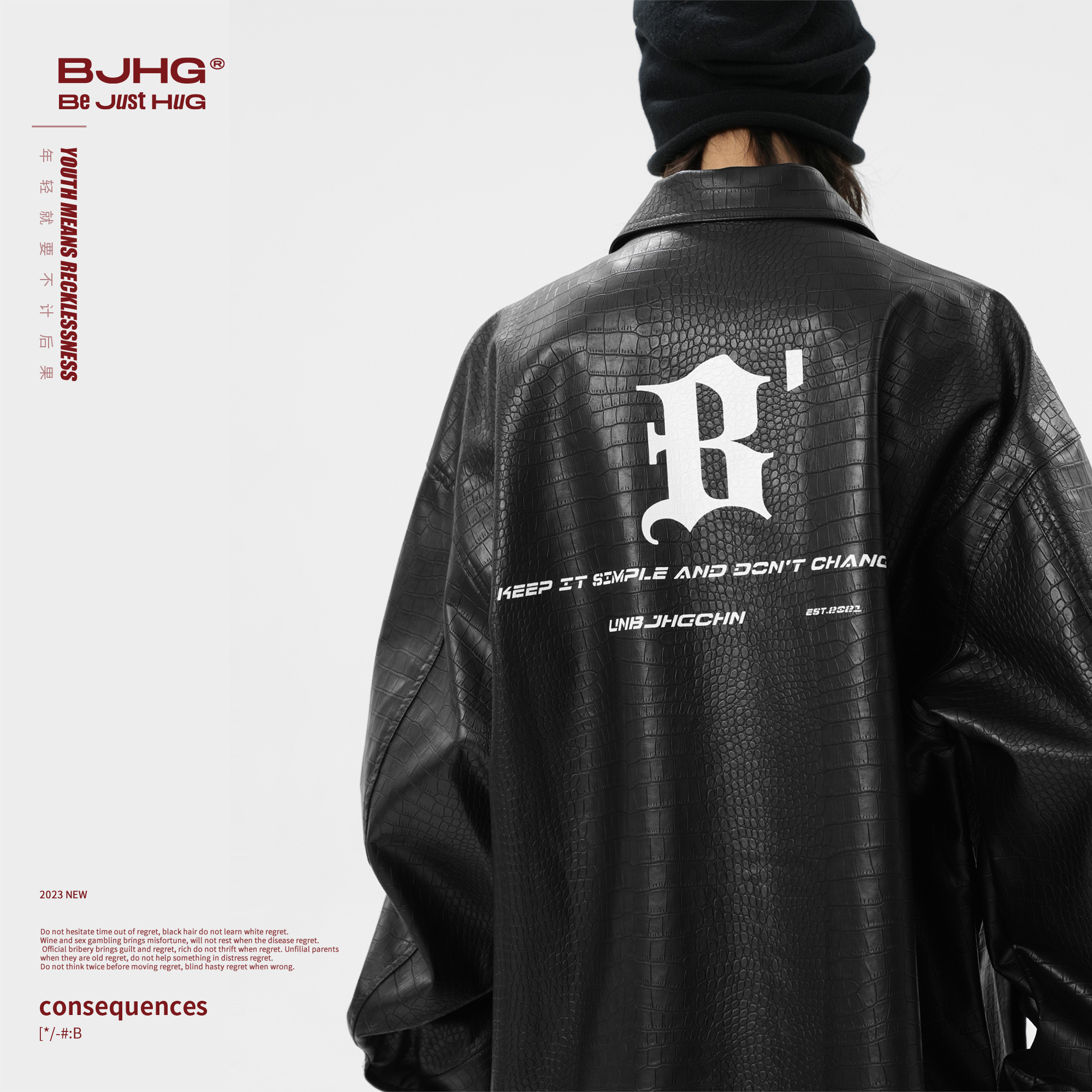 BJHG不计后果鳄鱼纹理PU皮衣外套男款秋季潮牌美式复古工装夹克女