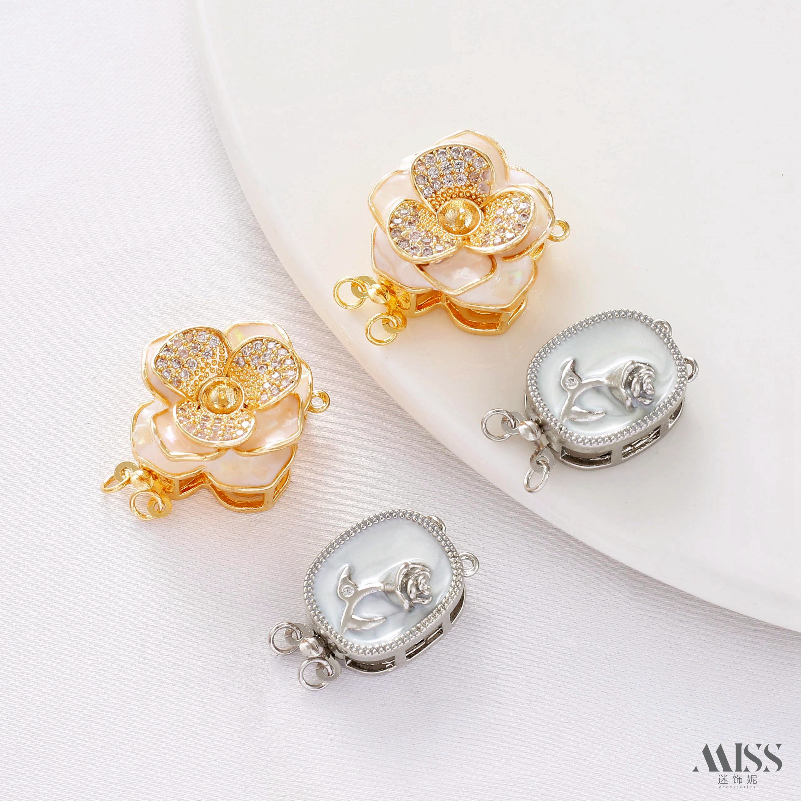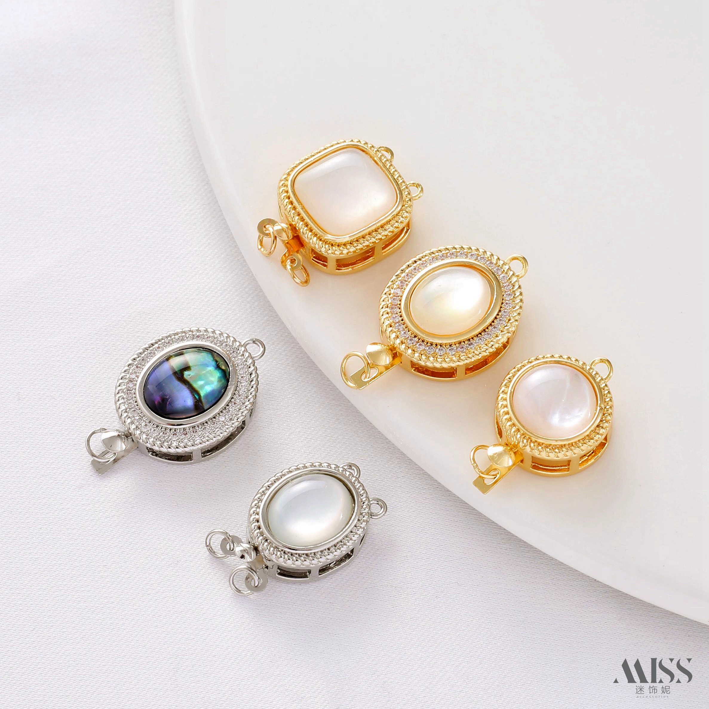 18K包金保色白金镶锆石贝壳珠插扣收尾链接扣diy珍珠手链项链配件