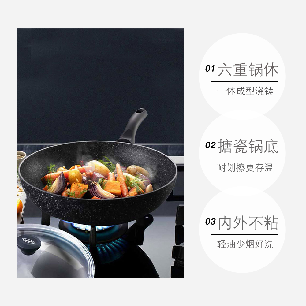 【自营】意大利Likuai搪瓷不粘锅燃气灶炒菜锅中华炒锅炉利快玻璃