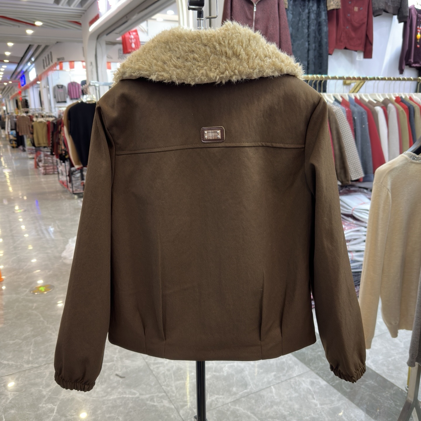 年轻妈妈装毛毛翻领加绒短外套