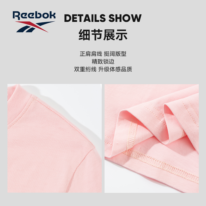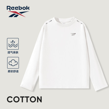 Reebok锐步儿童长袖t恤春秋款男童白色纯棉打底衫女童秋季家居服