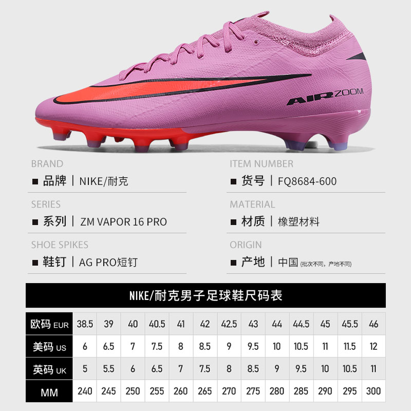 Nike耐克足球鞋男刺客VAPOR16高端AG-PRO短钉人草成人FQ8684-600