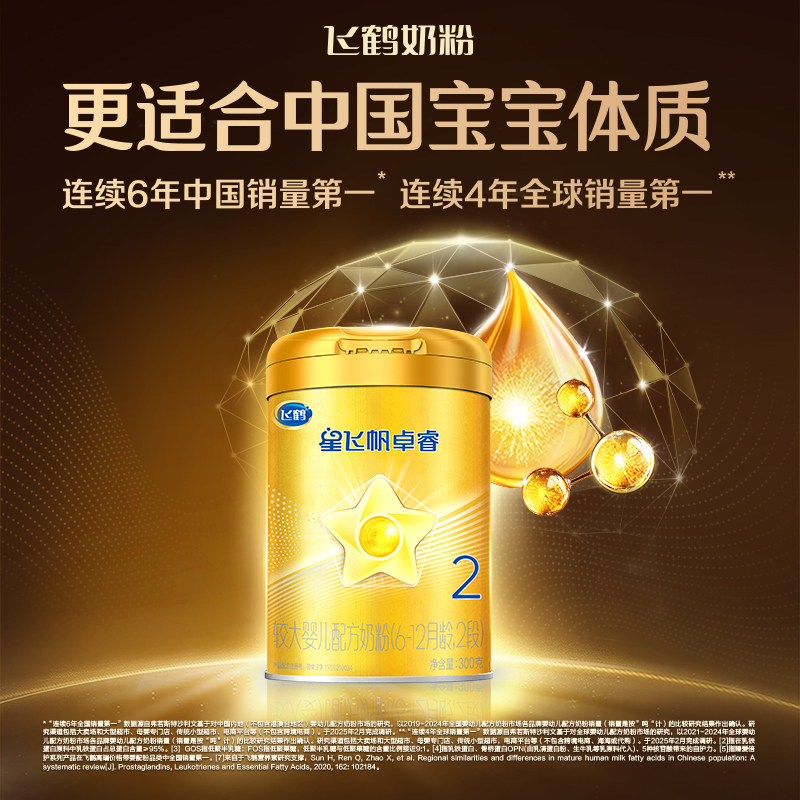 新客专享|飞鹤星飞帆卓睿2段奶粉乳铁蛋白婴儿新生300g*1罐官方