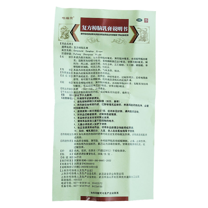 【哈瑞美】复方樟脑乳膏20g*1支/盒湿疹虫咬皮炎荨麻疹神经性皮炎过敏性皮炎