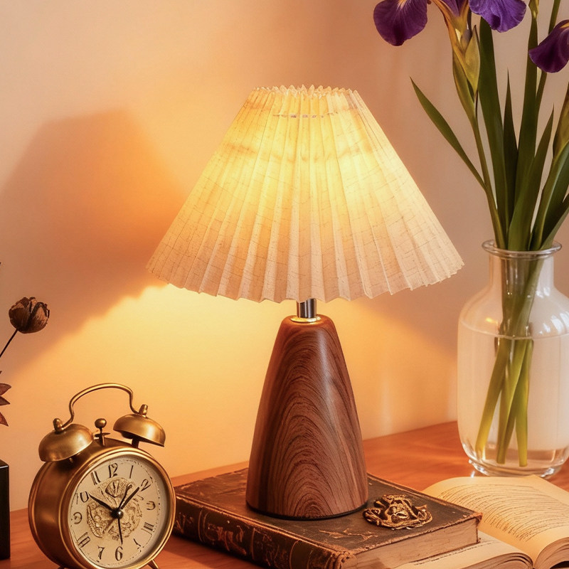 台灯床头灯卧室百褶复古北欧书房起夜夜灯温馨浪漫桌面装饰氛围感