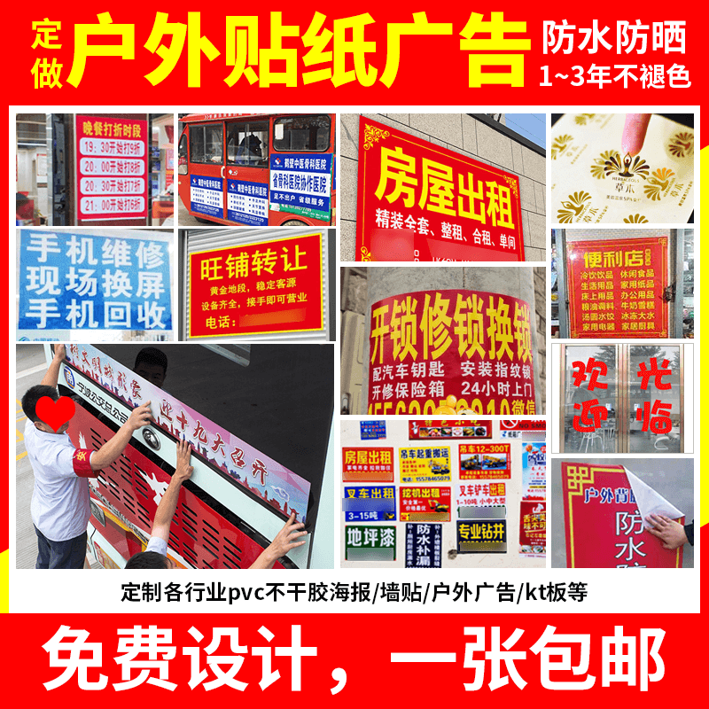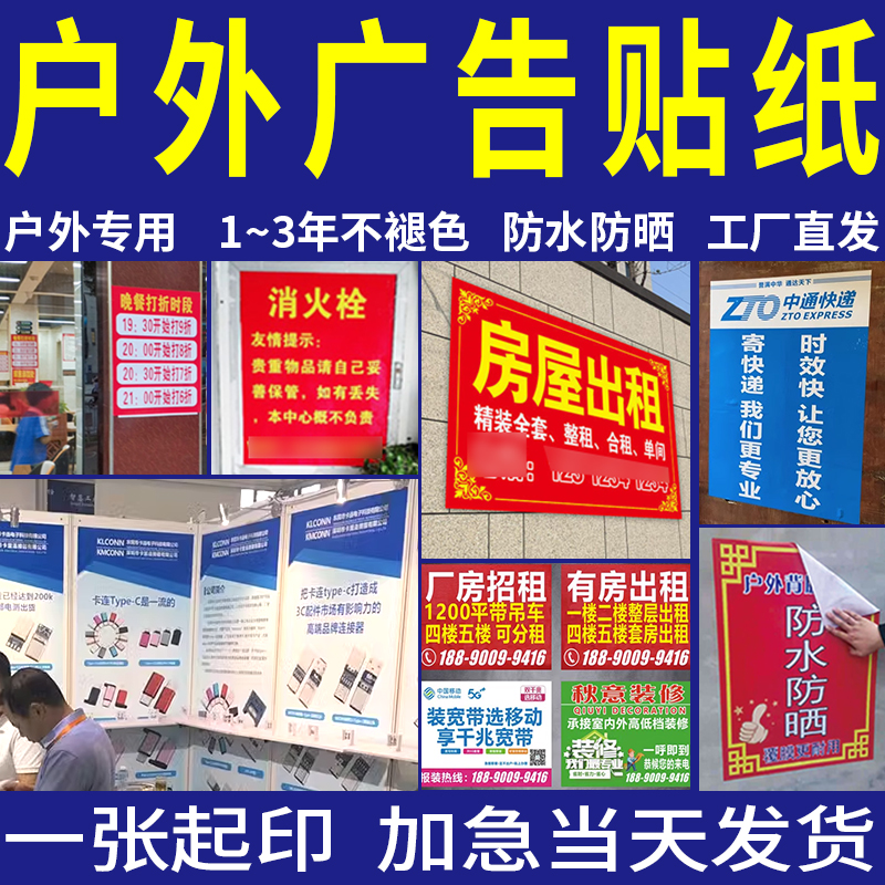 防水防晒广告贴纸海报自粘户外背胶不干胶定制印刷招牌广告贴墙贴