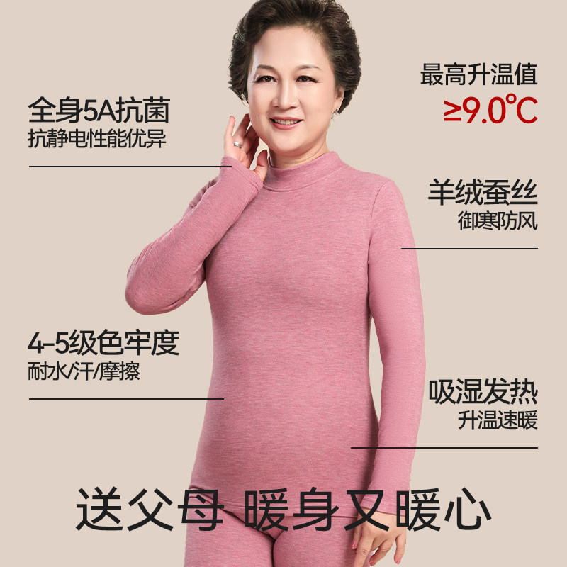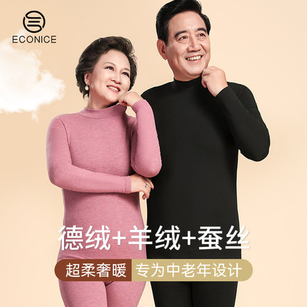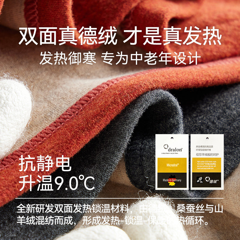 德绒羊绒妈妈秋衣秋裤套装女打底中老年爸爸发热保暖内衣棉毛衫冬