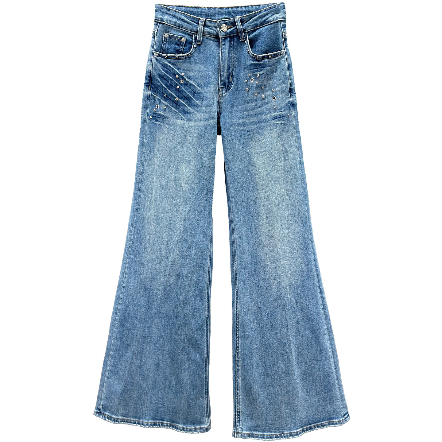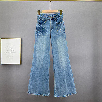 镶钻牛仔裤女加长裤2026年春季新款高腰显瘦复古做旧阔脚喇叭裤潮