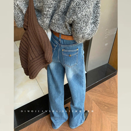 DIMO深蓝色加绒牛仔裤冬厚款版型超好看的裤子高腰显瘦窄版直筒裤