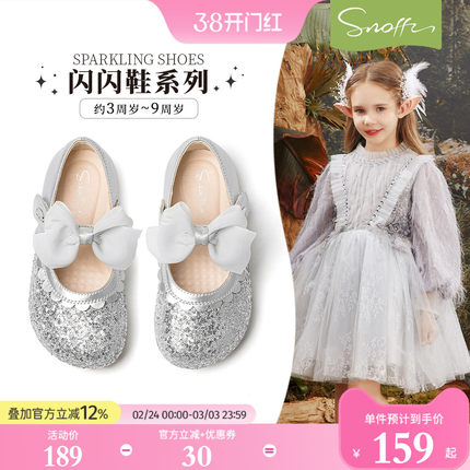 斯纳菲儿童水晶鞋女童皮鞋银色公主鞋2026春秋新款洋气闪亮女孩鞋