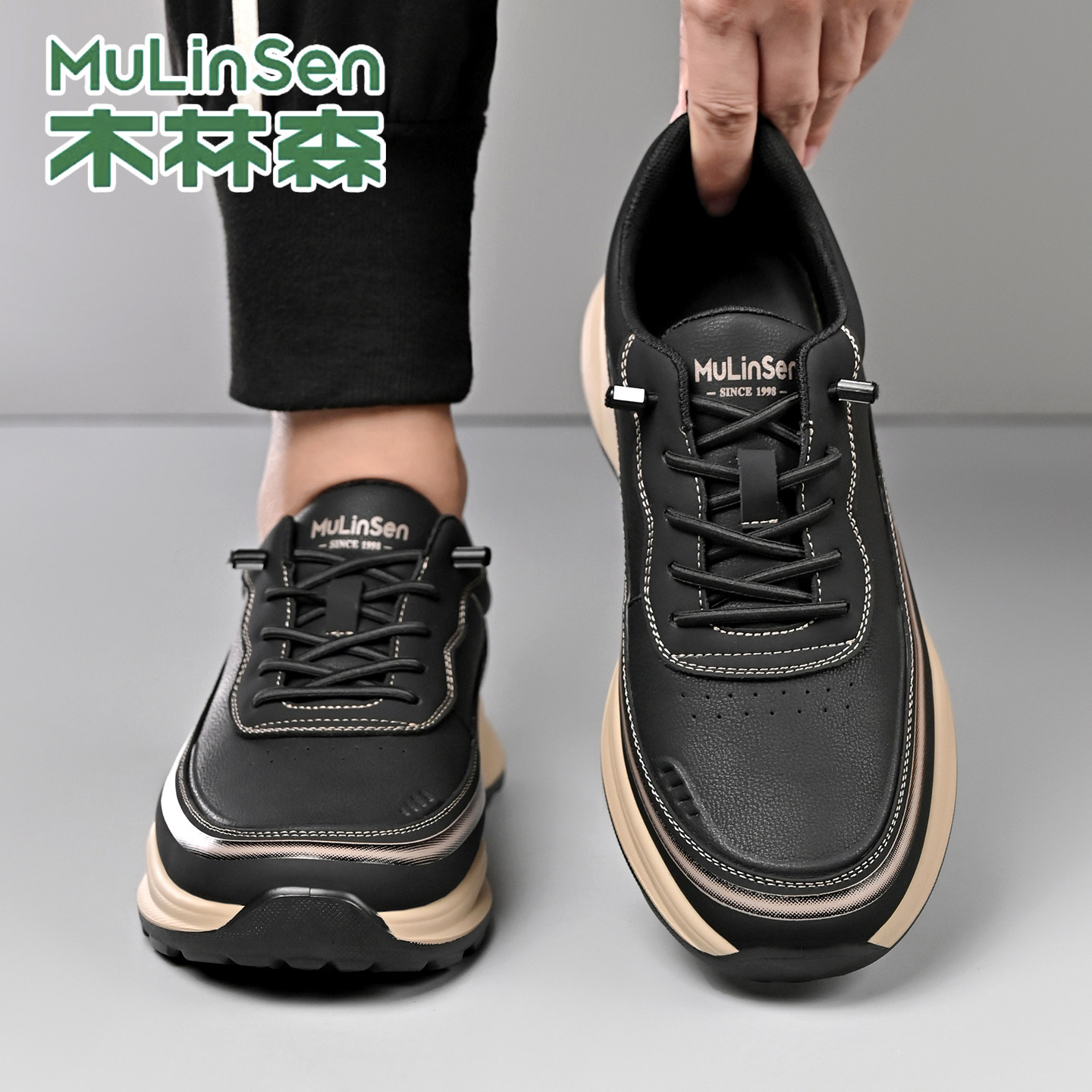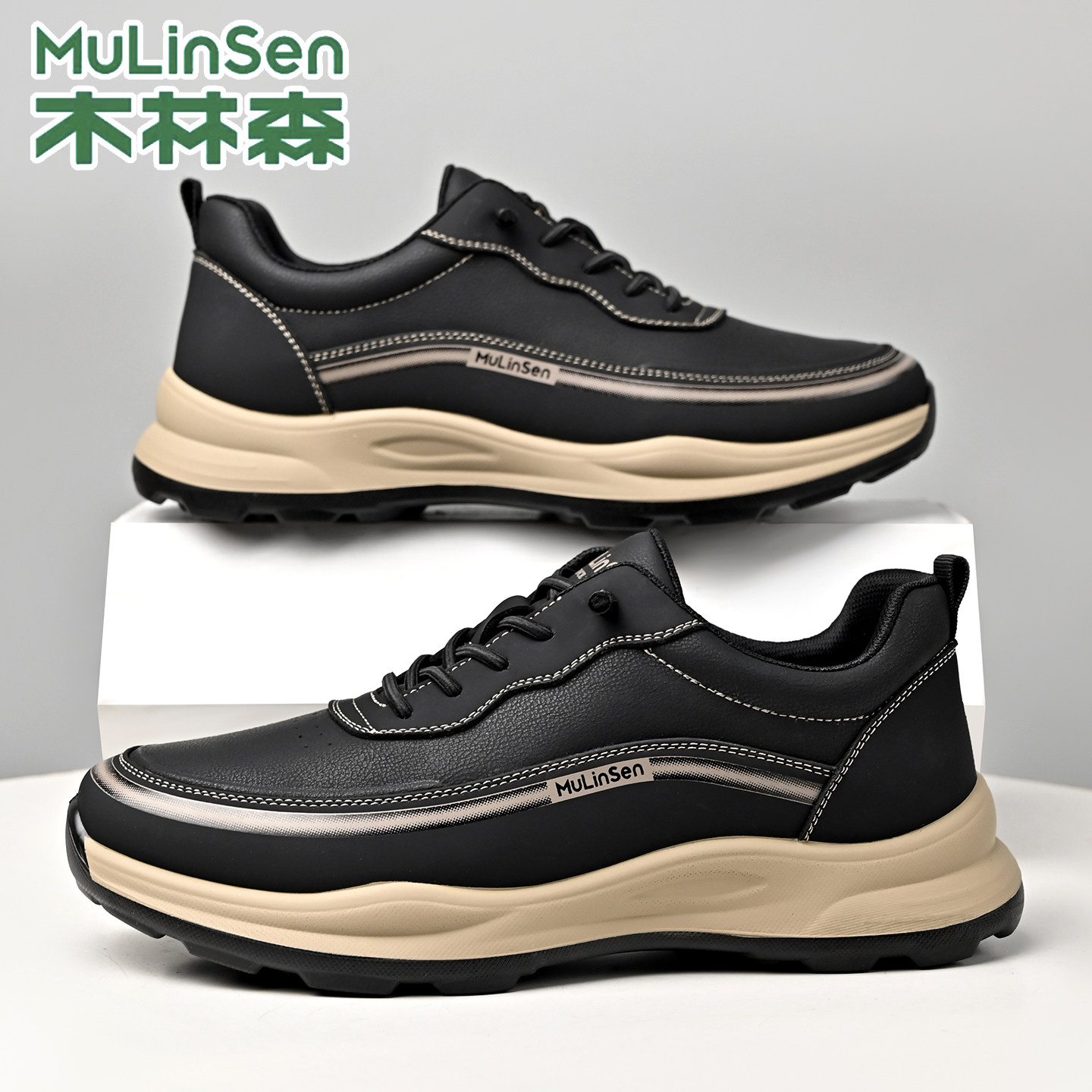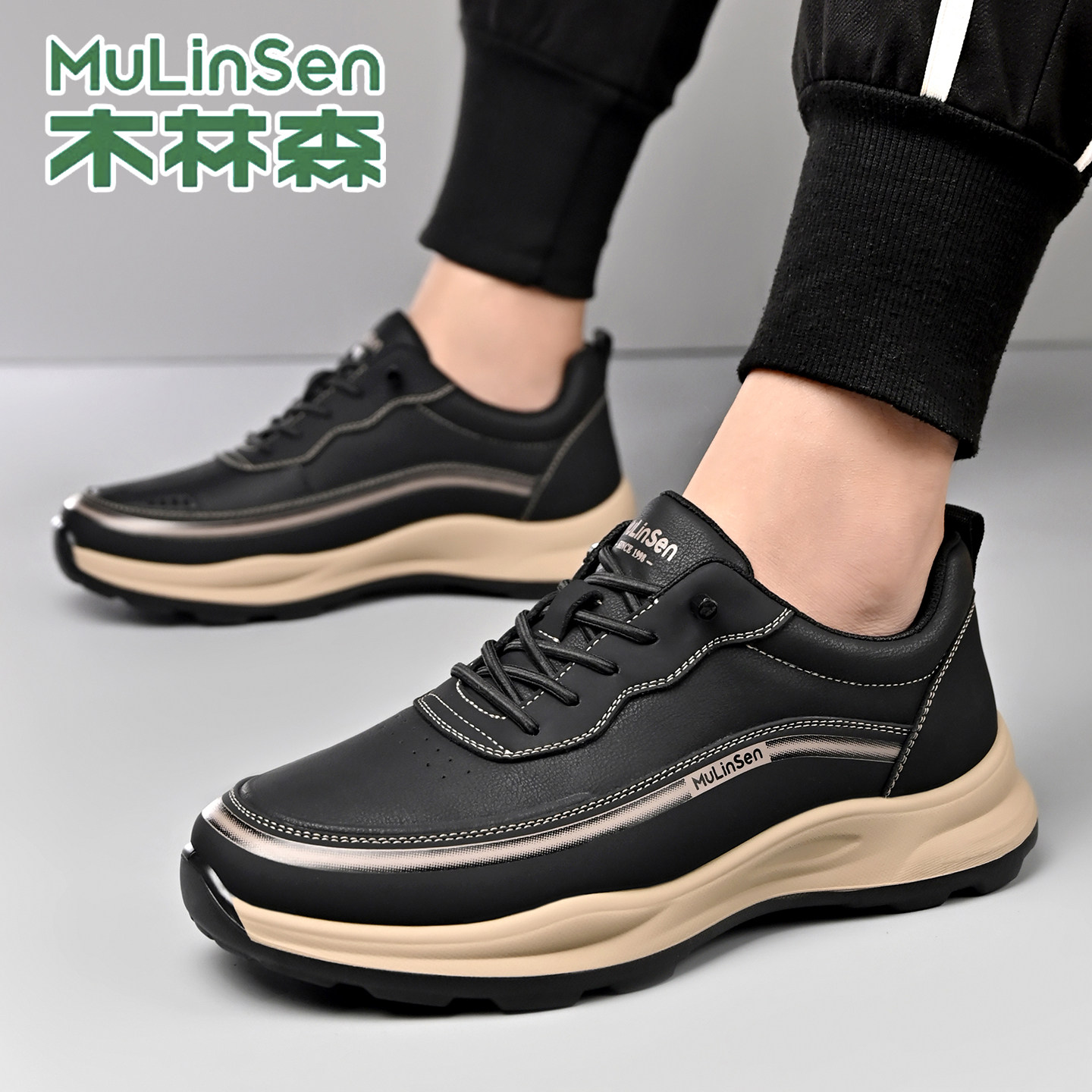 木林森男鞋真皮加绒保暖休闲皮鞋