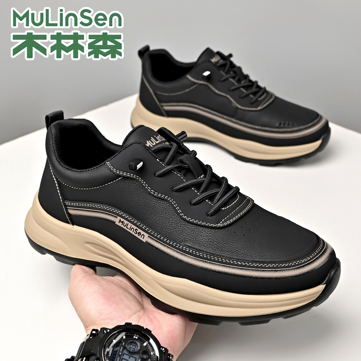木林森男鞋真皮加绒保暖户外登山鞋休闲皮鞋软底防滑爸爸鞋运动鞋