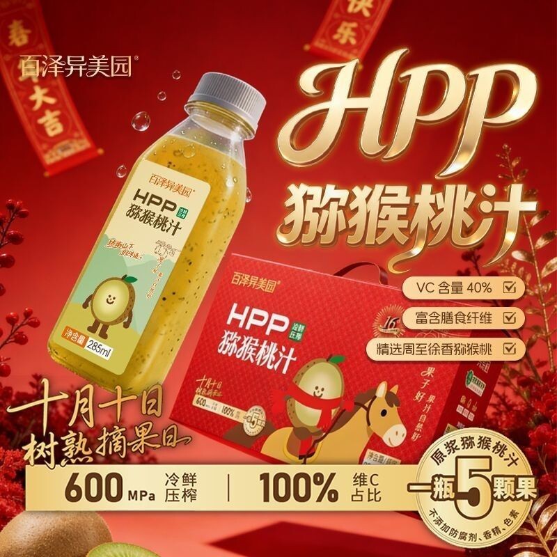 百泽异美园HPP冷鲜压榨猕猴桃汁100%原浆礼盒装现货速发