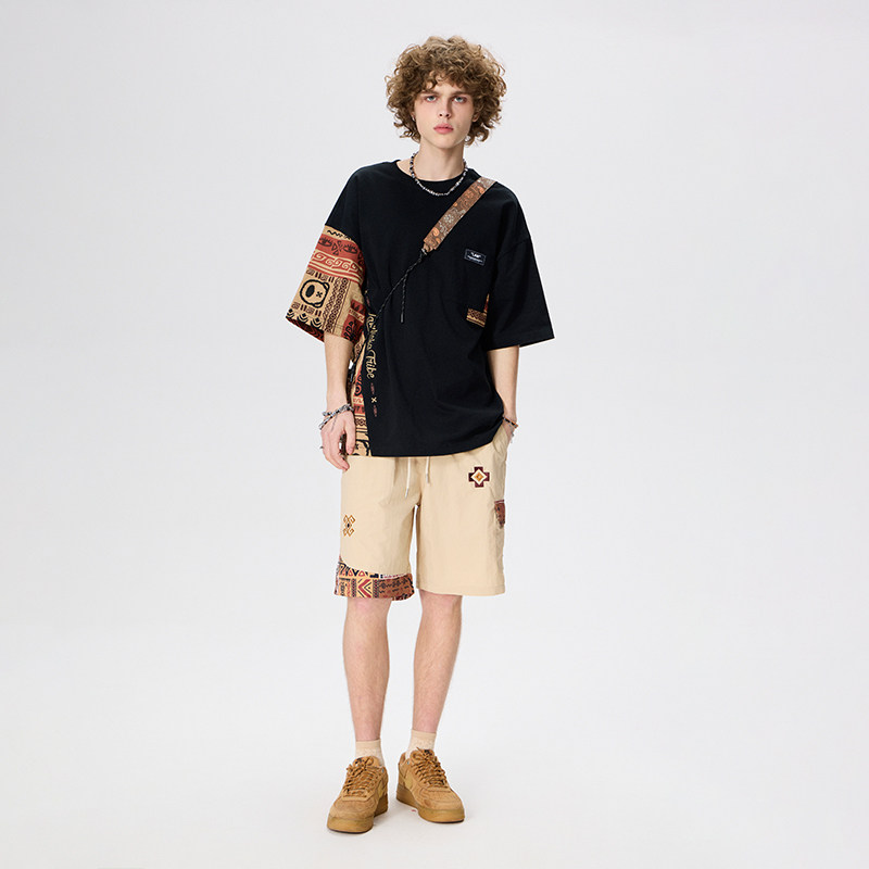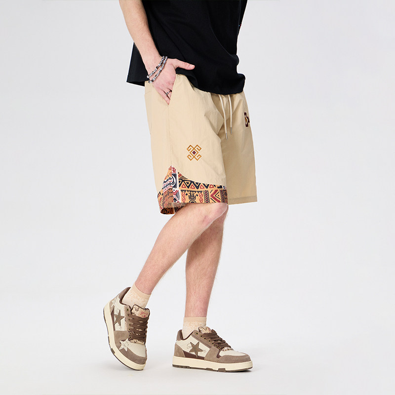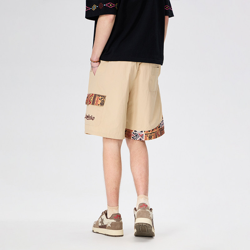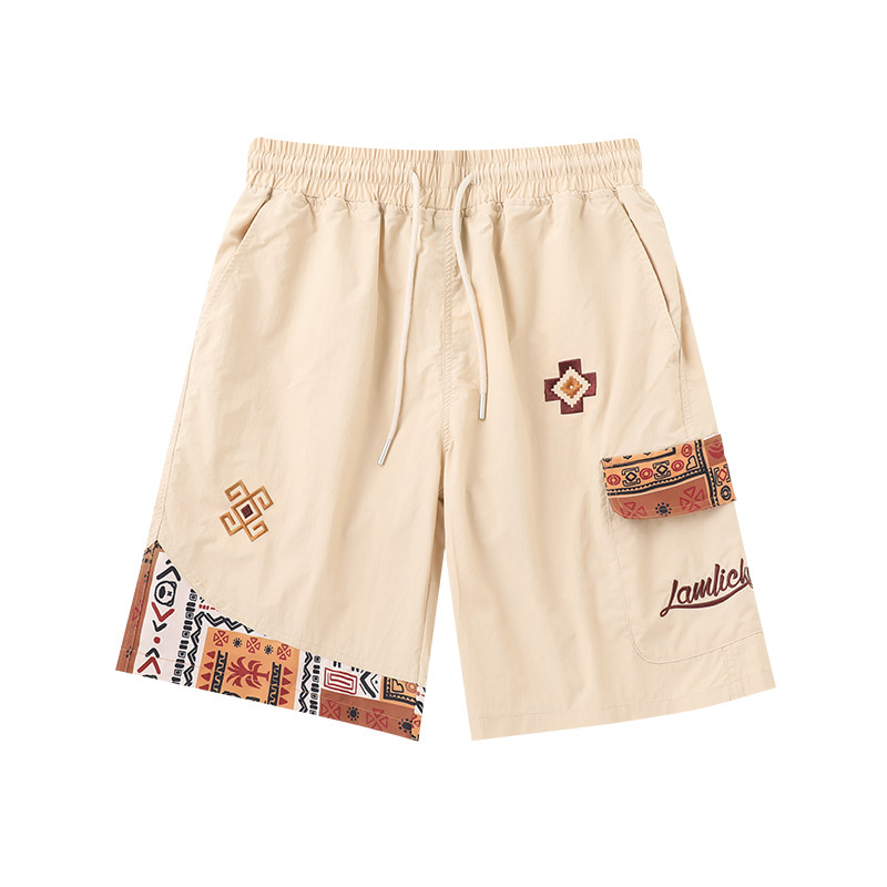 LAMLICKA民族风绣花短裤痞帅潮牌炸街宽松透气美式运动五分裤百搭