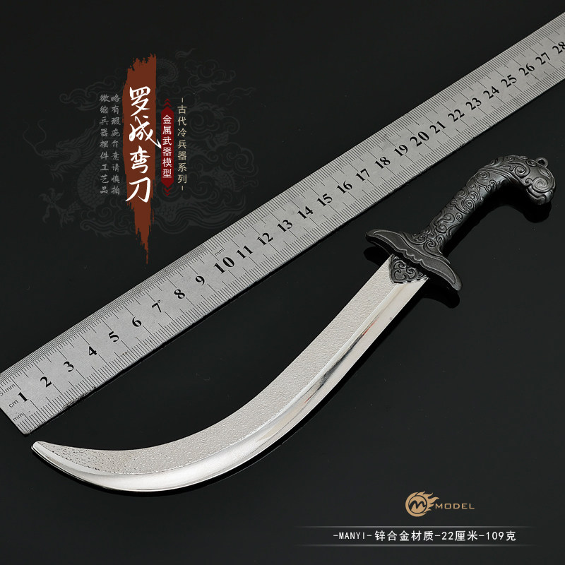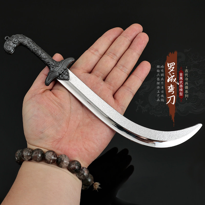 隋唐演义影视周边 罗成弯刀银月金属武器模型合金兵器摆件玩具