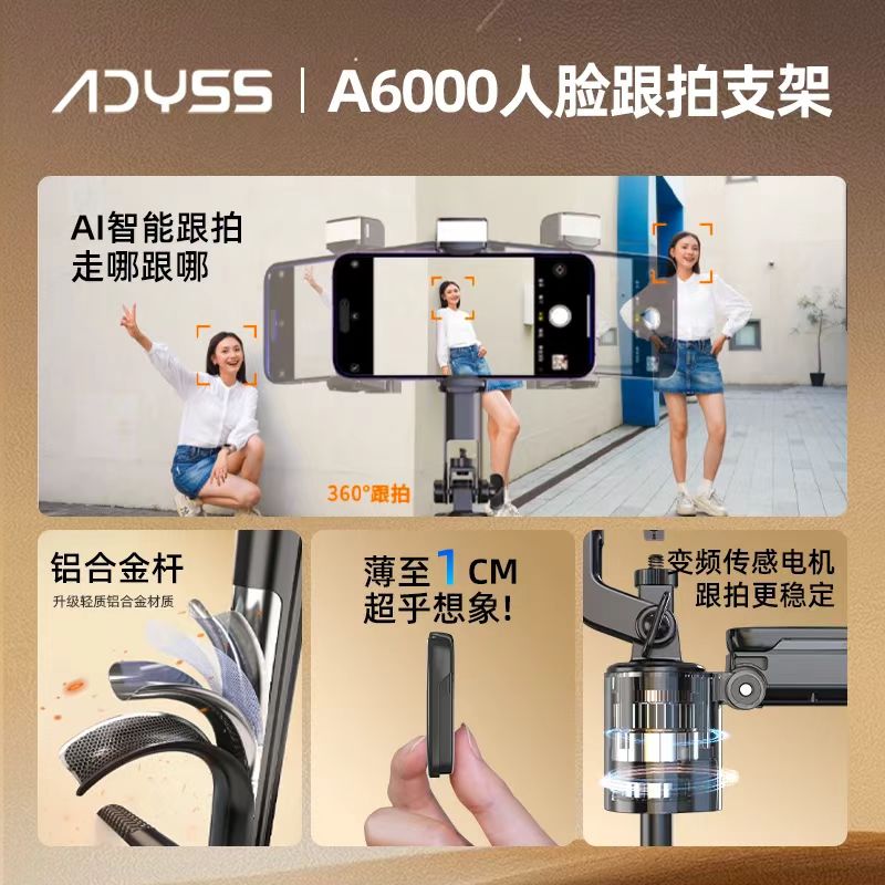叠品A6000】跟拍云台360度全自动旋转直播支架手机拍摄神器自拍杆便携AI人脸追踪旅游落地三脚架演唱会拍摄