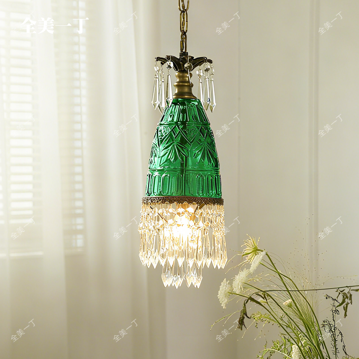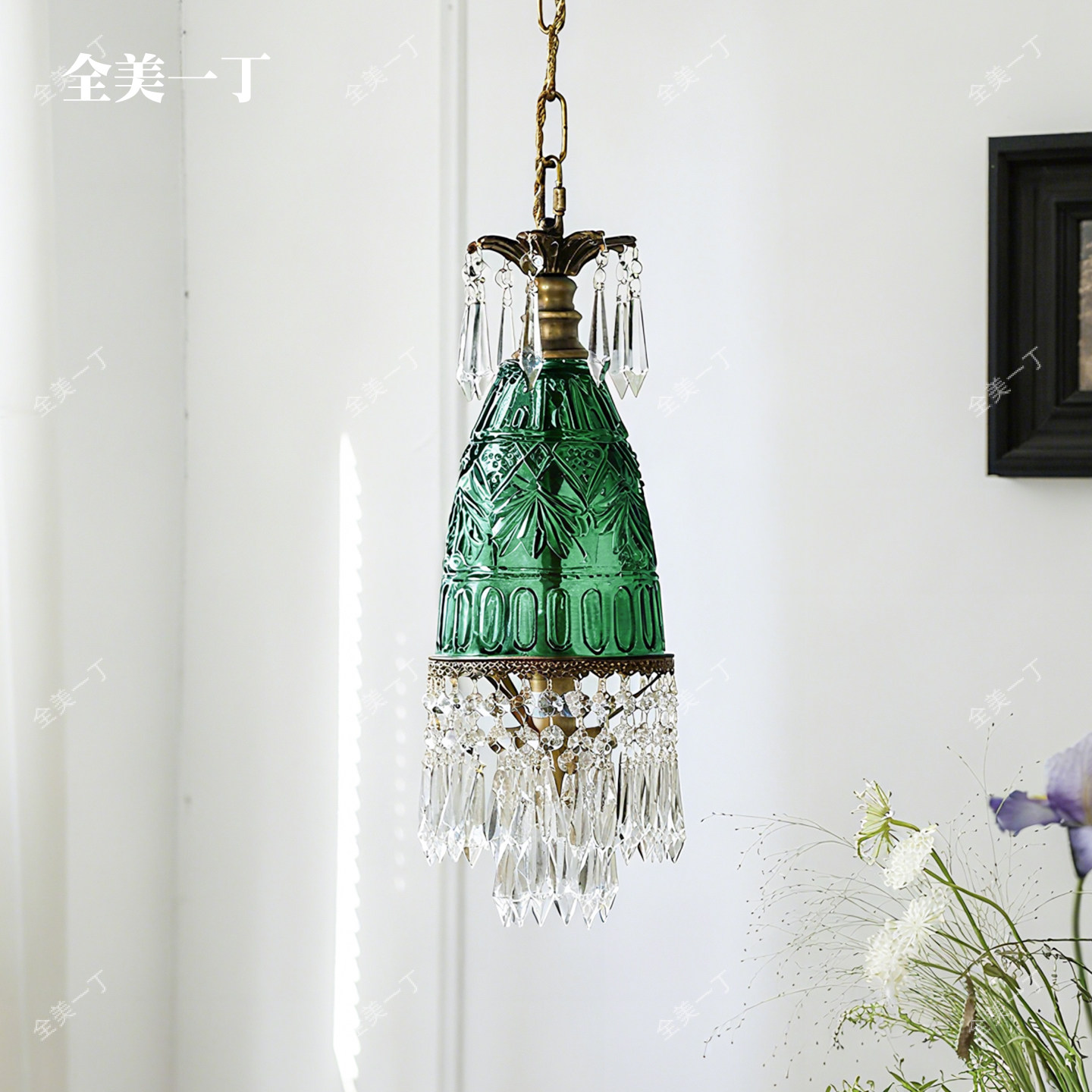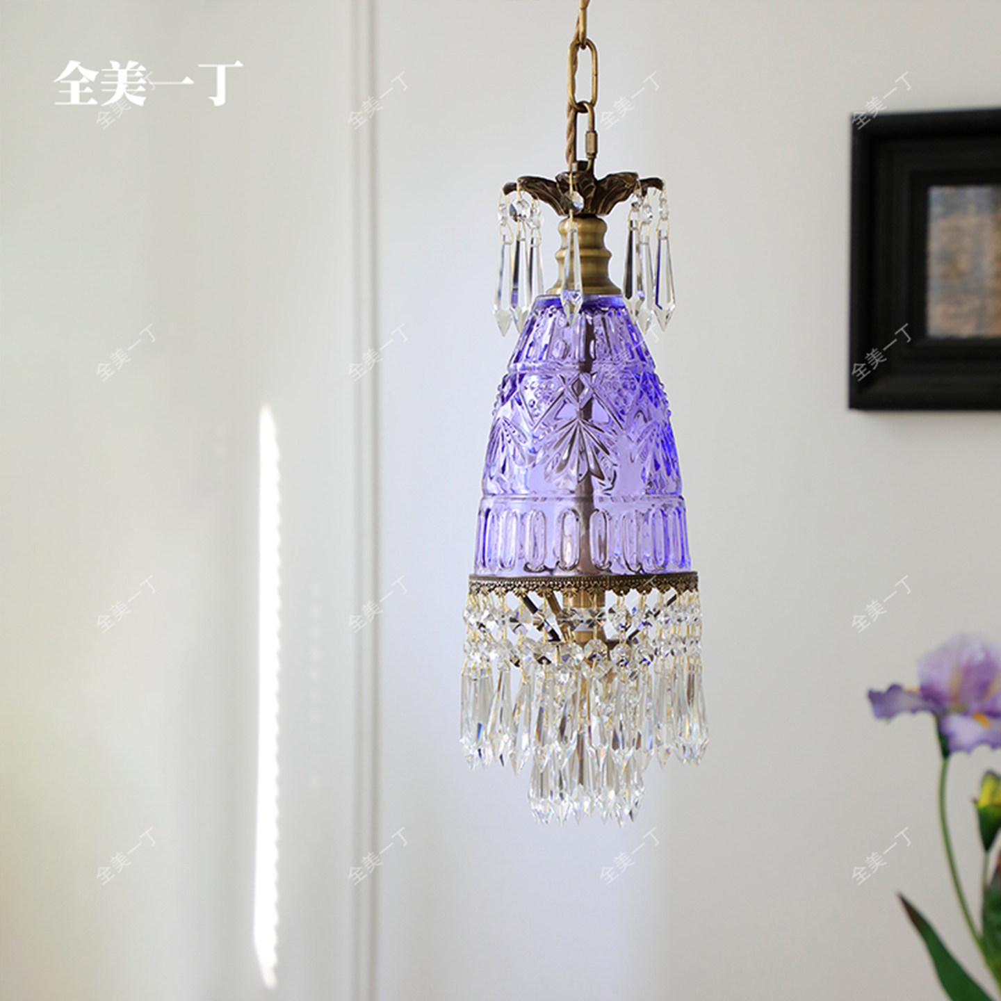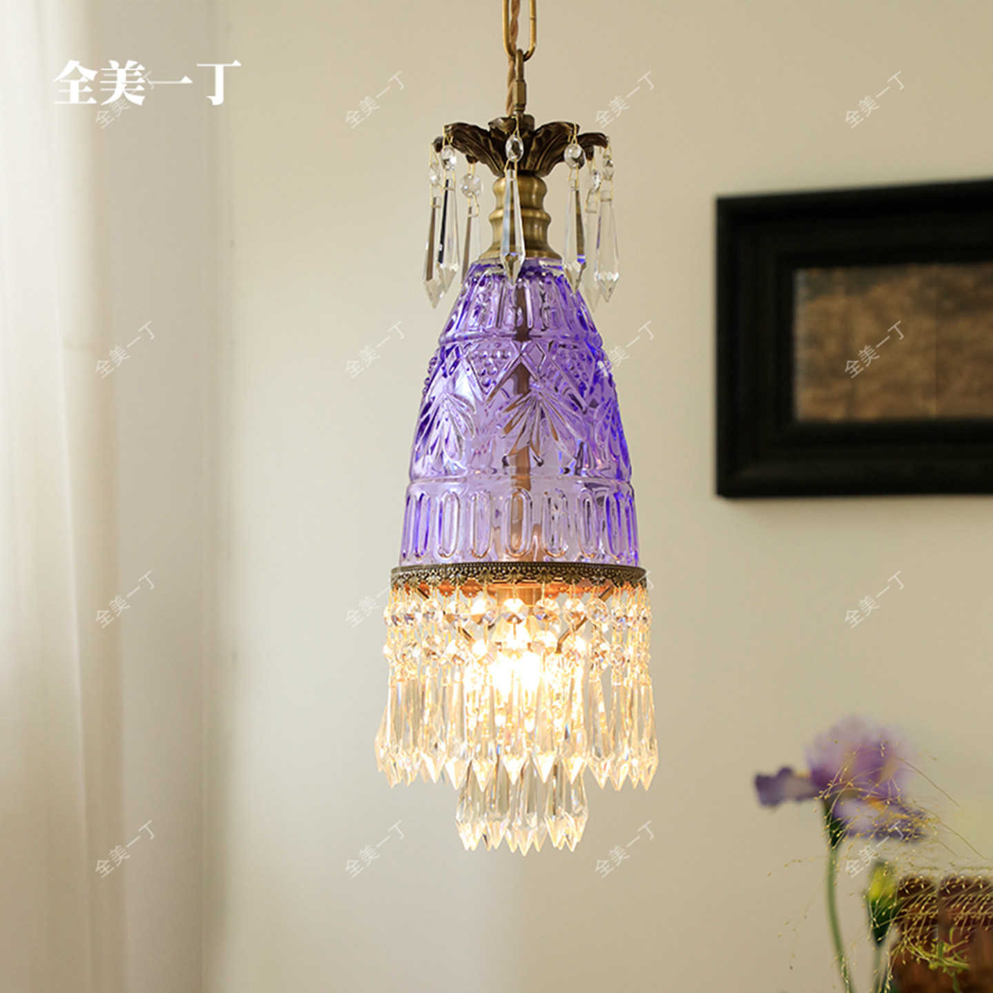 全美一丁法式复古黄铜床头灯水晶紫色玻璃玄关过道走廊入户小吊灯