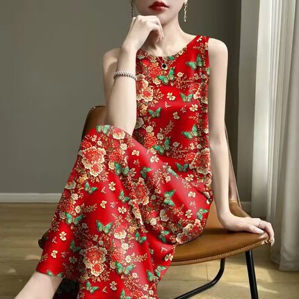 清仓捡漏-2025夏新款修身减龄遮肚妈妈装背心吊带中长款连衣裙女